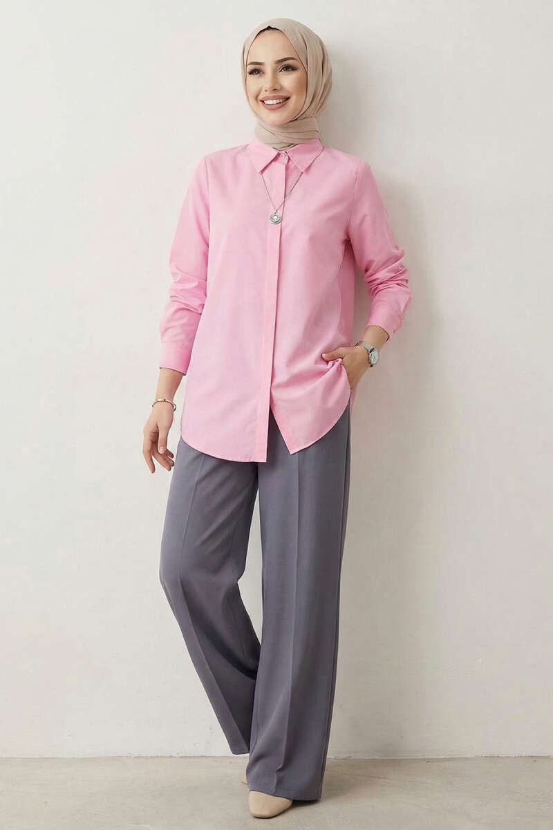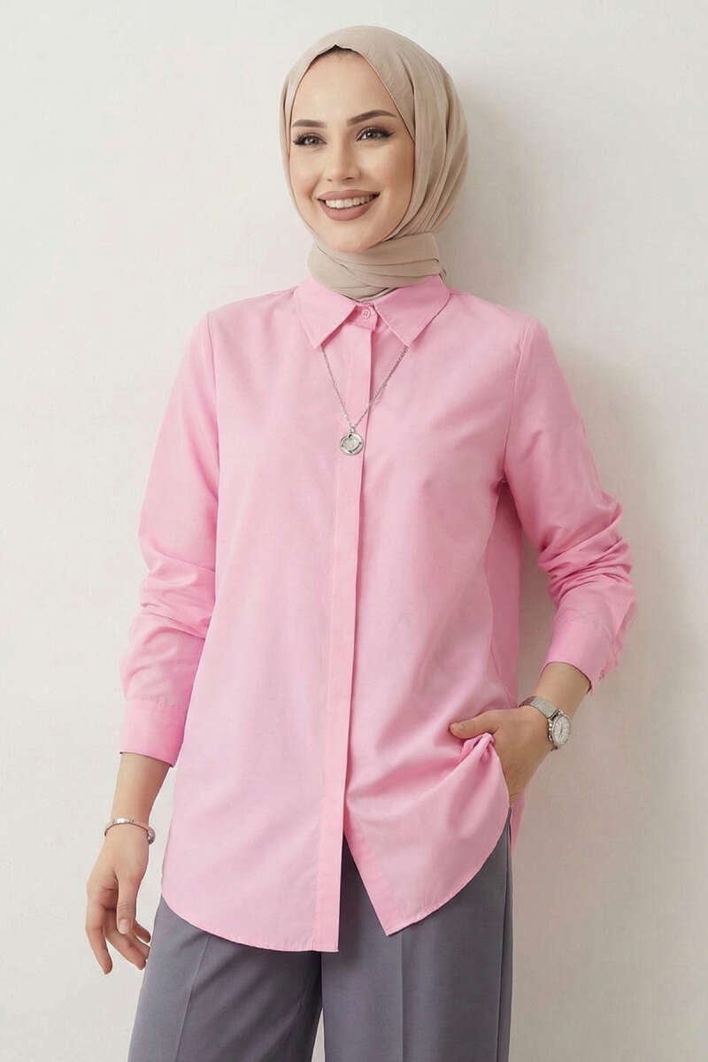 Basic Gizli Düğmeli Gömlek Pembe (0853-8051-734600)