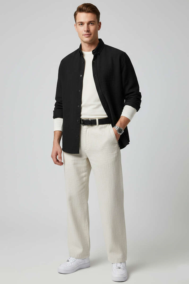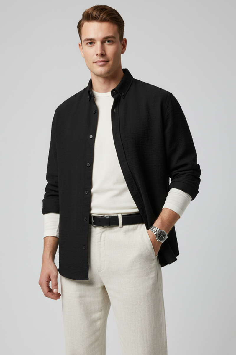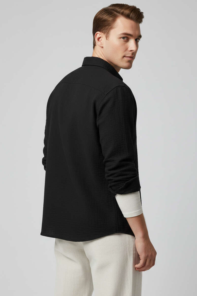 Basic Keten Erkek Gömlek Siyah (8459-5030-731153)