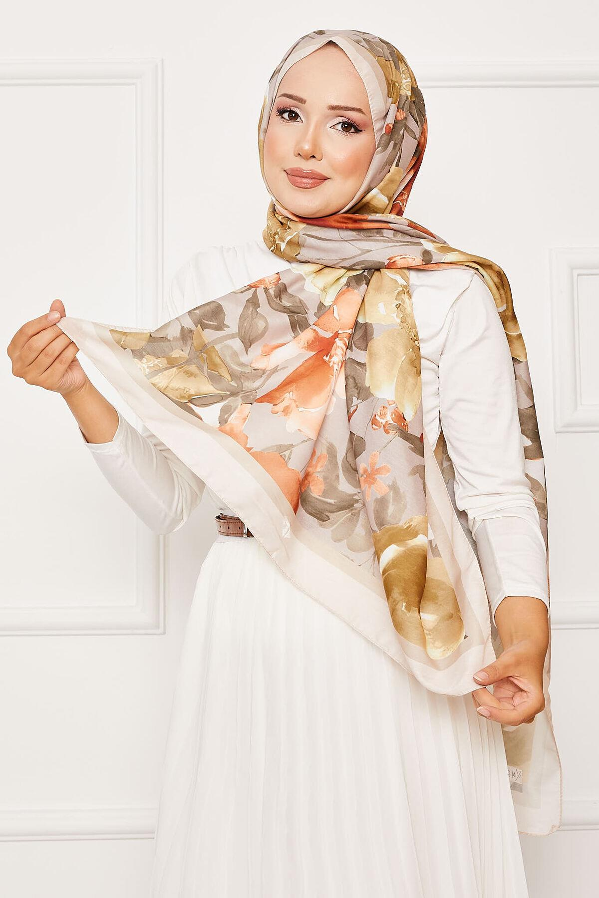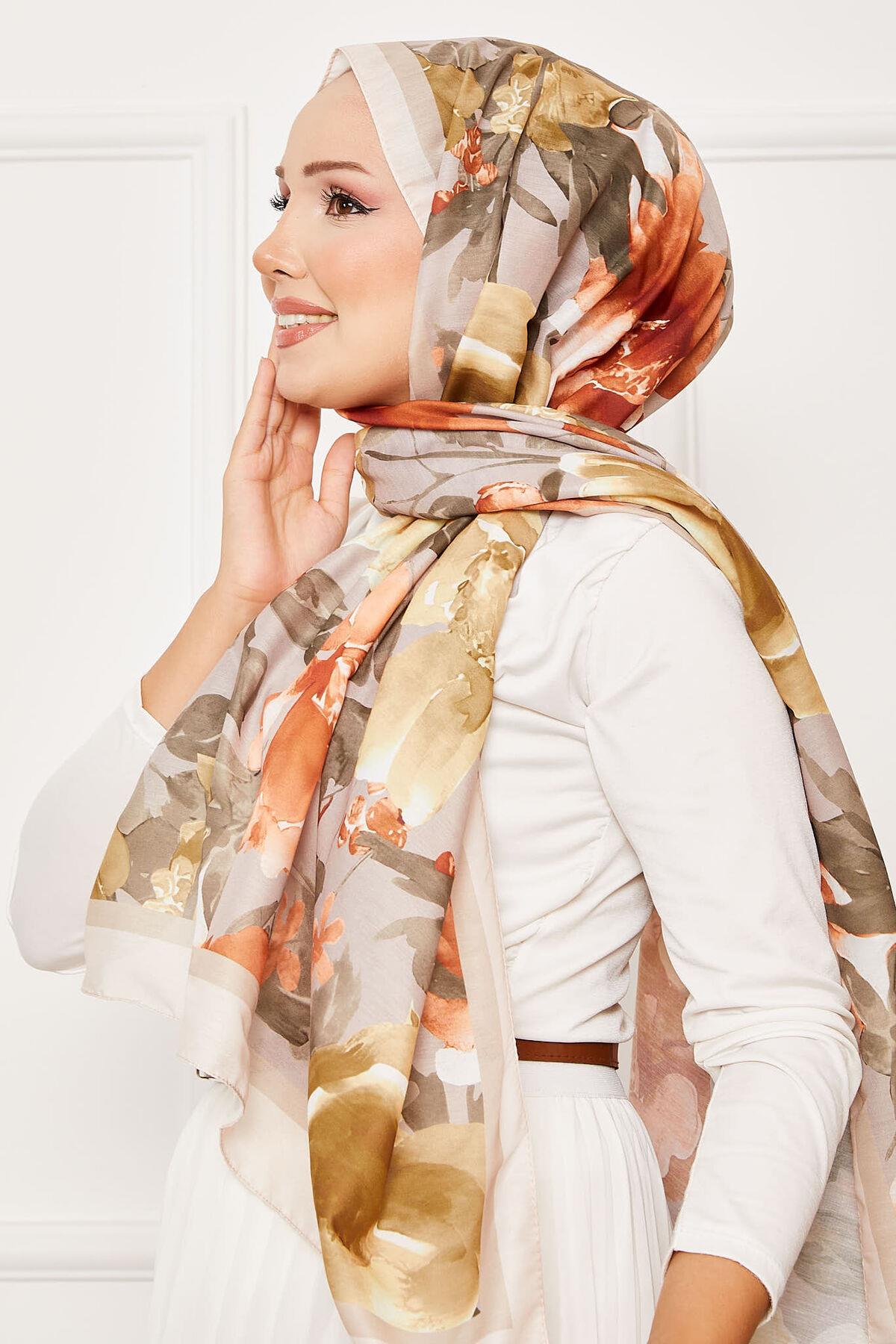 Batik Desen Çiçekli Tesettür Şal Bej (125M01040001R06STD)