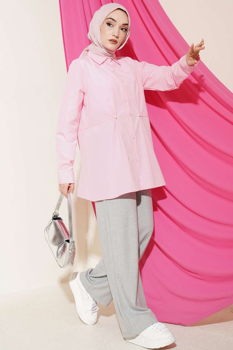 Bel Düğmeli Basic Gömlek Pembe (0853-5309-737852)