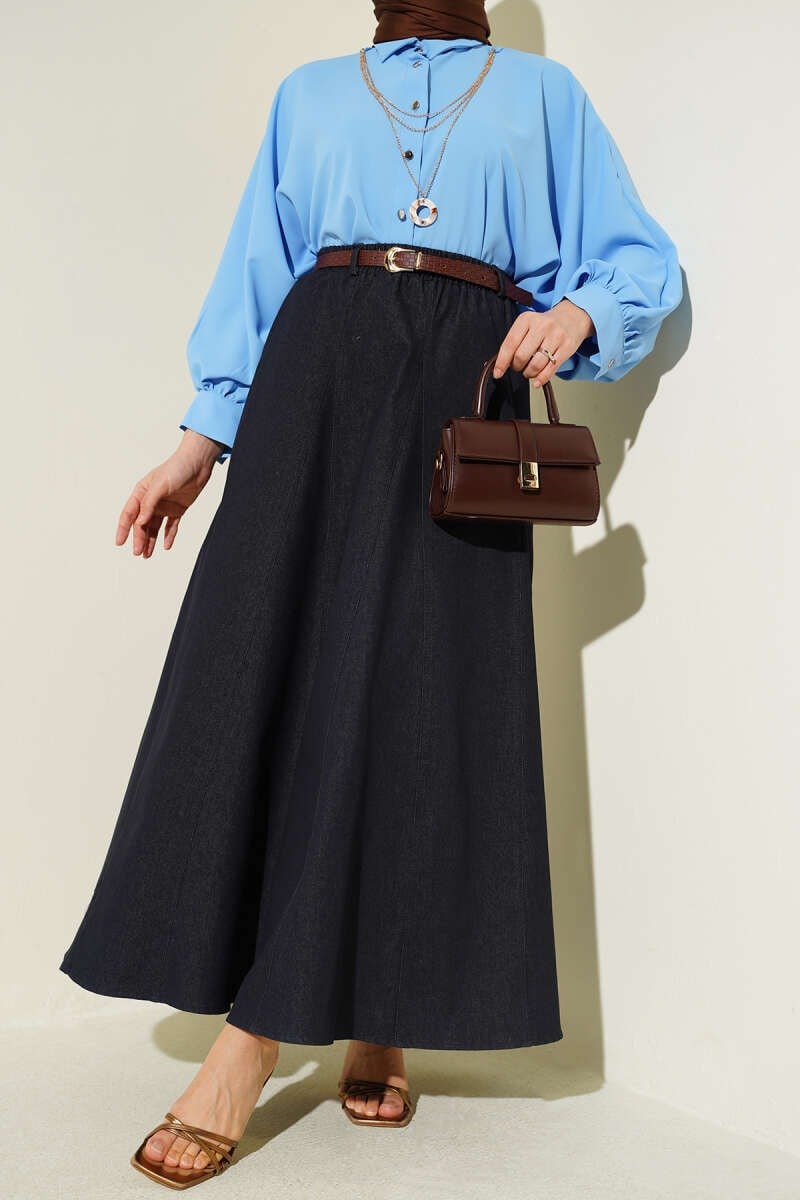 Bel Lastikli Kemerli Kot Etek Lacivert (0262-4510-740054)