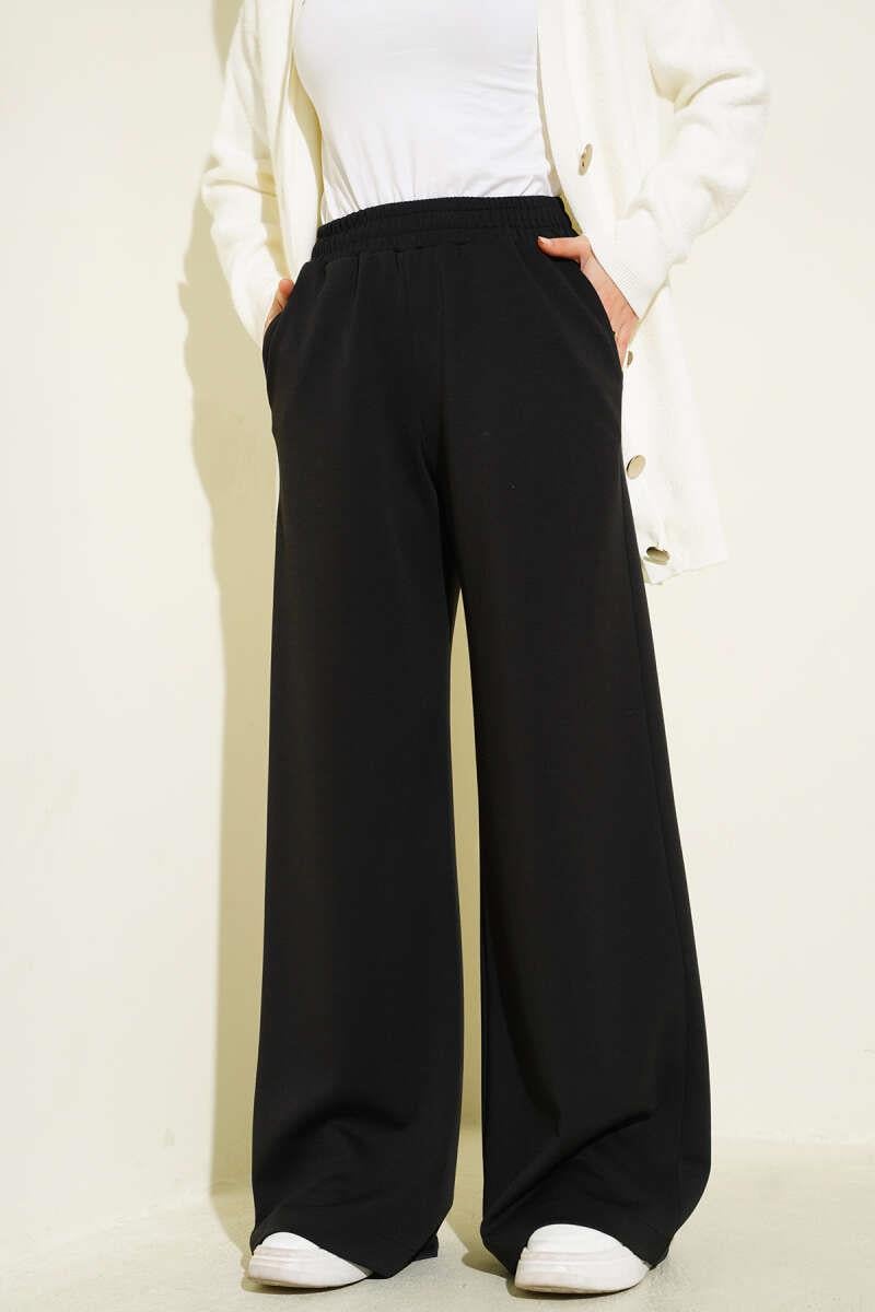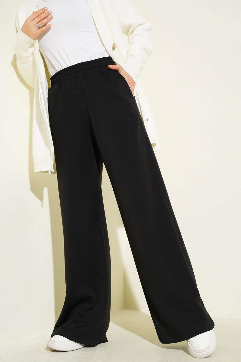 Beli Lastikli Bol Paça Pantolon Siyah (0311-2517-683022)
