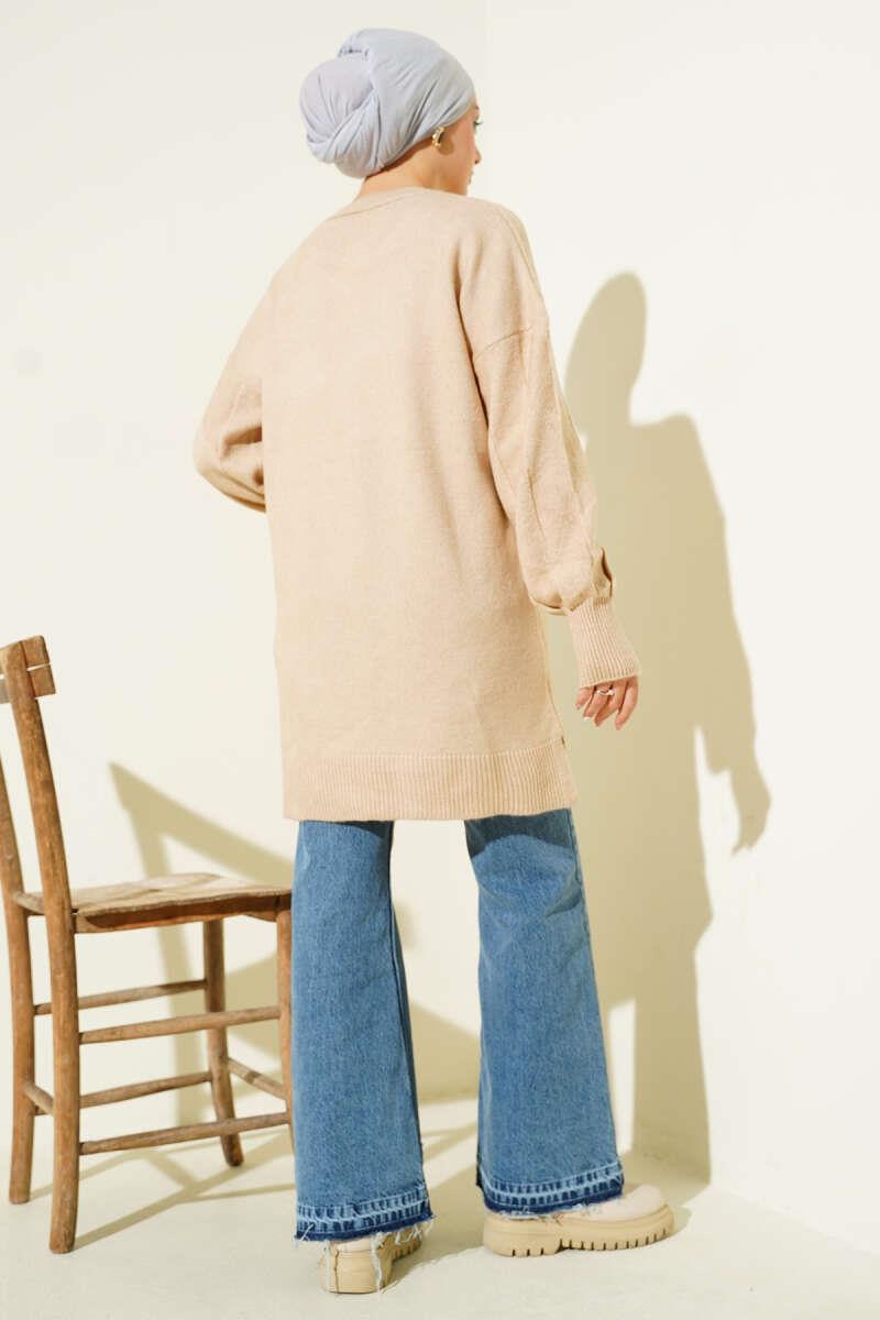 Bisiklet Yaka Yumoş Yan Yırtmaçlı Triko Tunik Latte (0829-7017-686211)