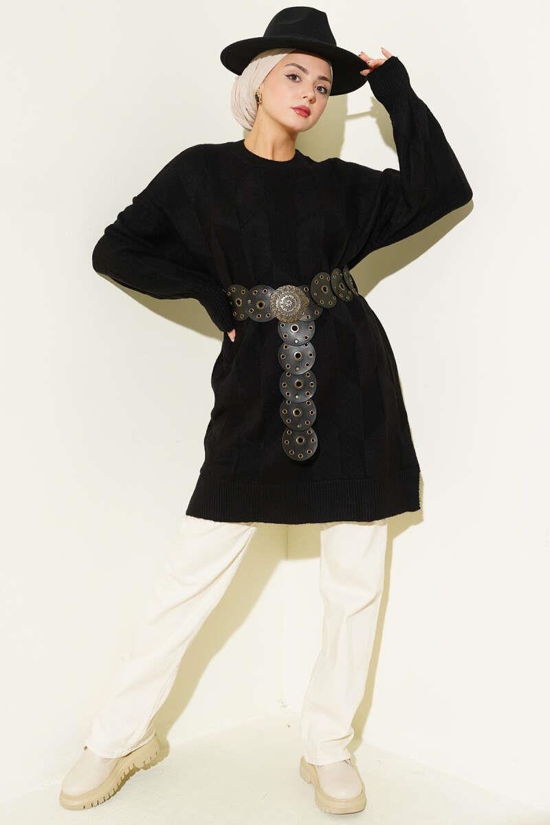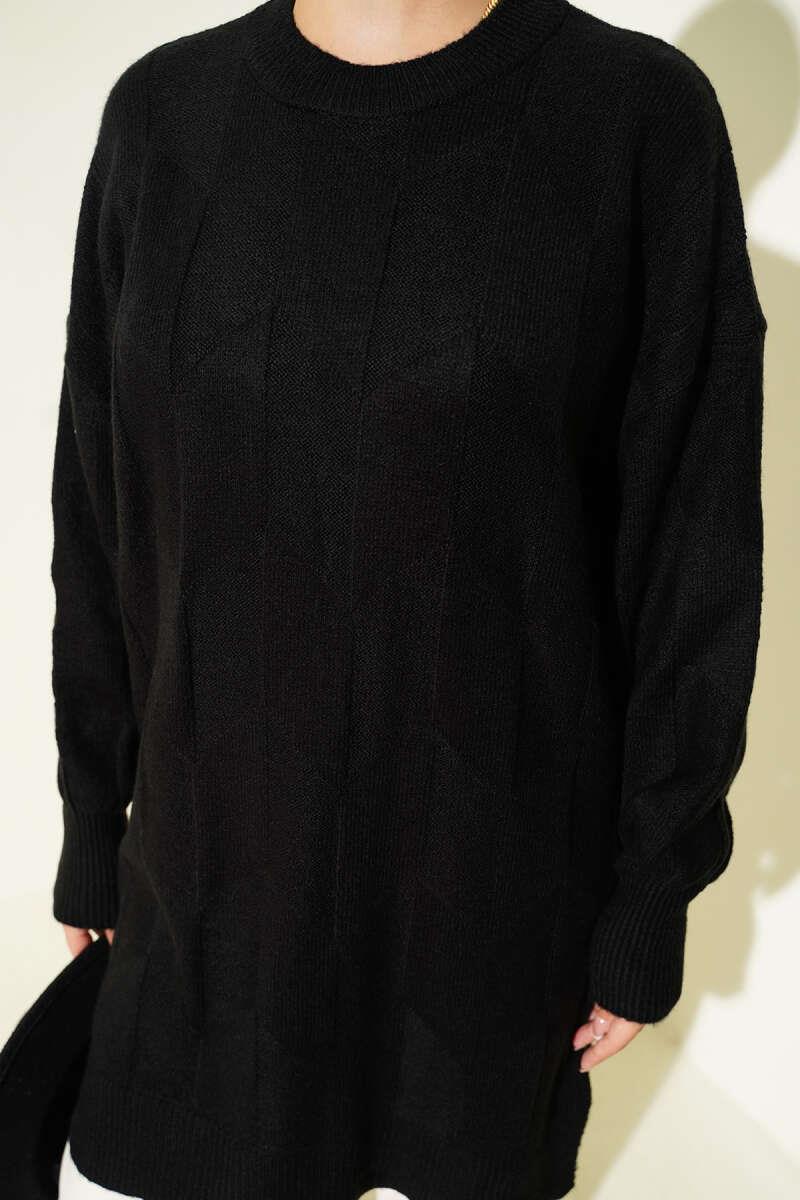 Bisiklet Yaka Yumoş Yan Yırtmaçlı Triko Tunik Siyah (0829-7017-686212)
