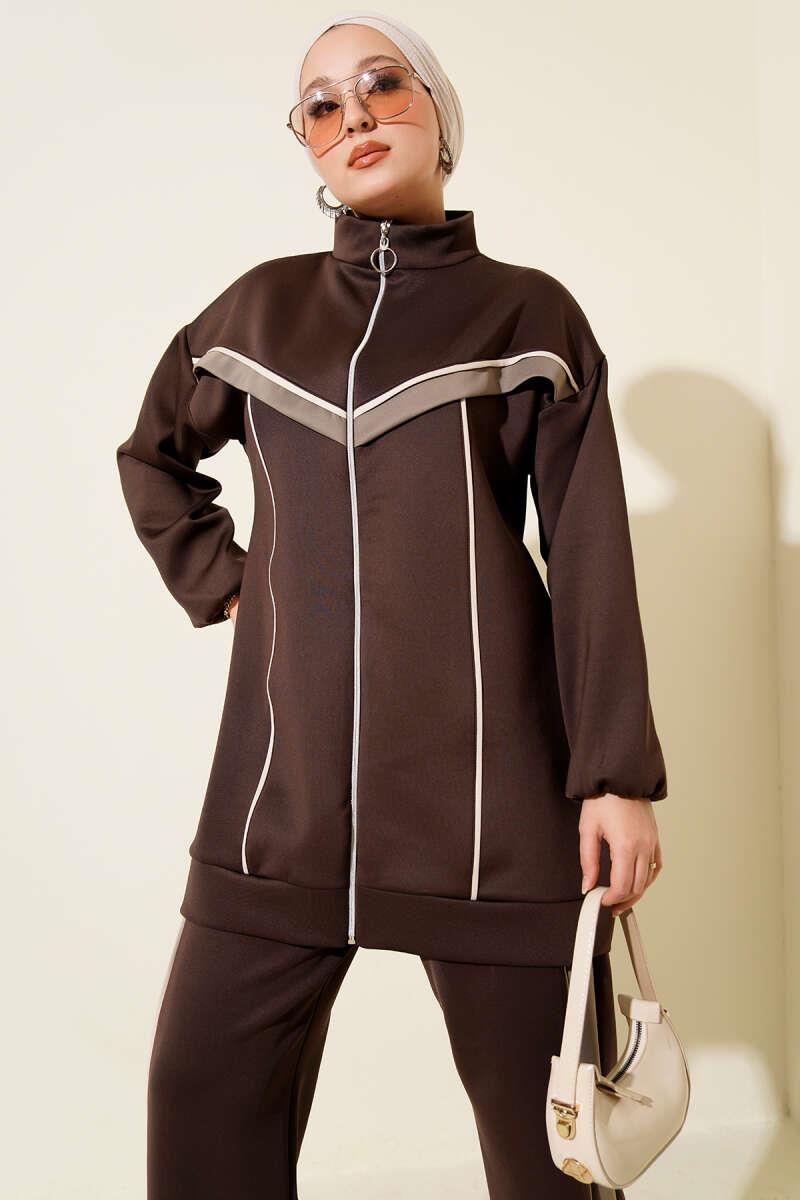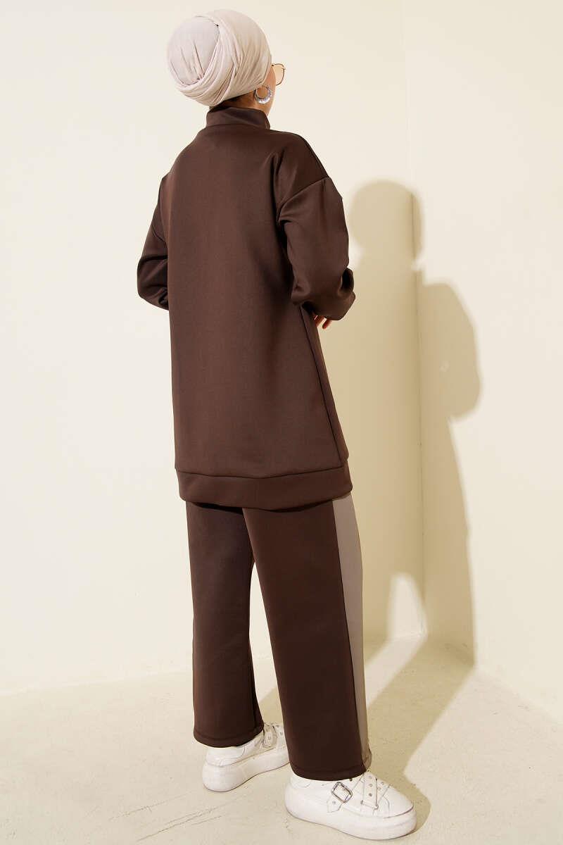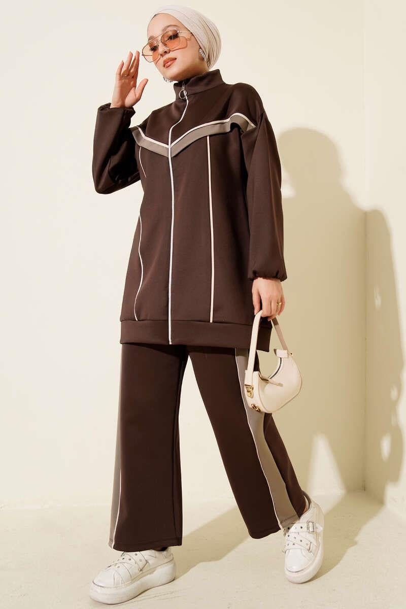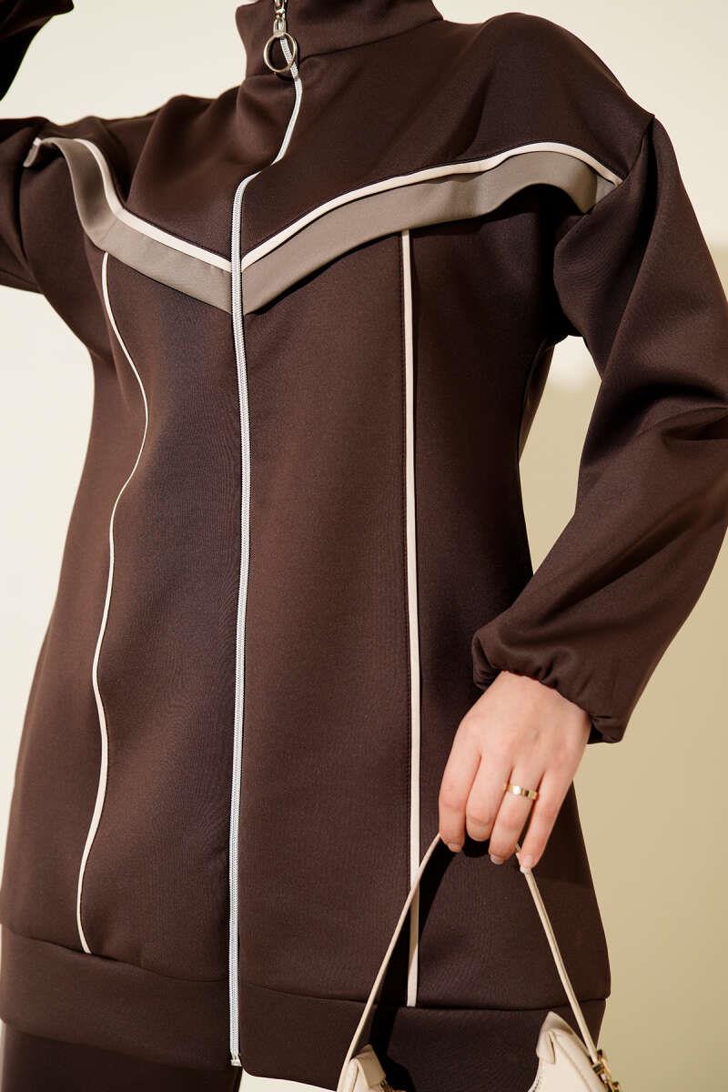 Biyeli Şeritli Scuba İkili Takım Kahve (0829-5347-685646)