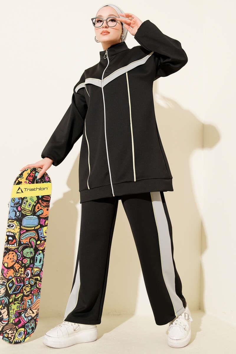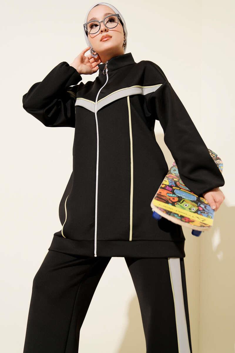 Biyeli Şeritli Scuba İkili Takım Siyah (0829-5347-685653)