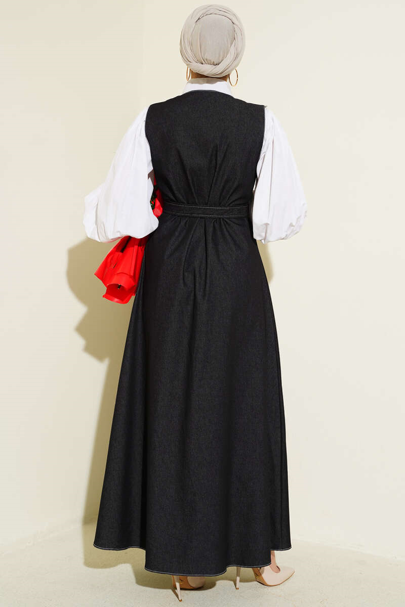 Boydan Düğmeli Çift Cepli Kot Jile Siyah (0569-4002-725910)