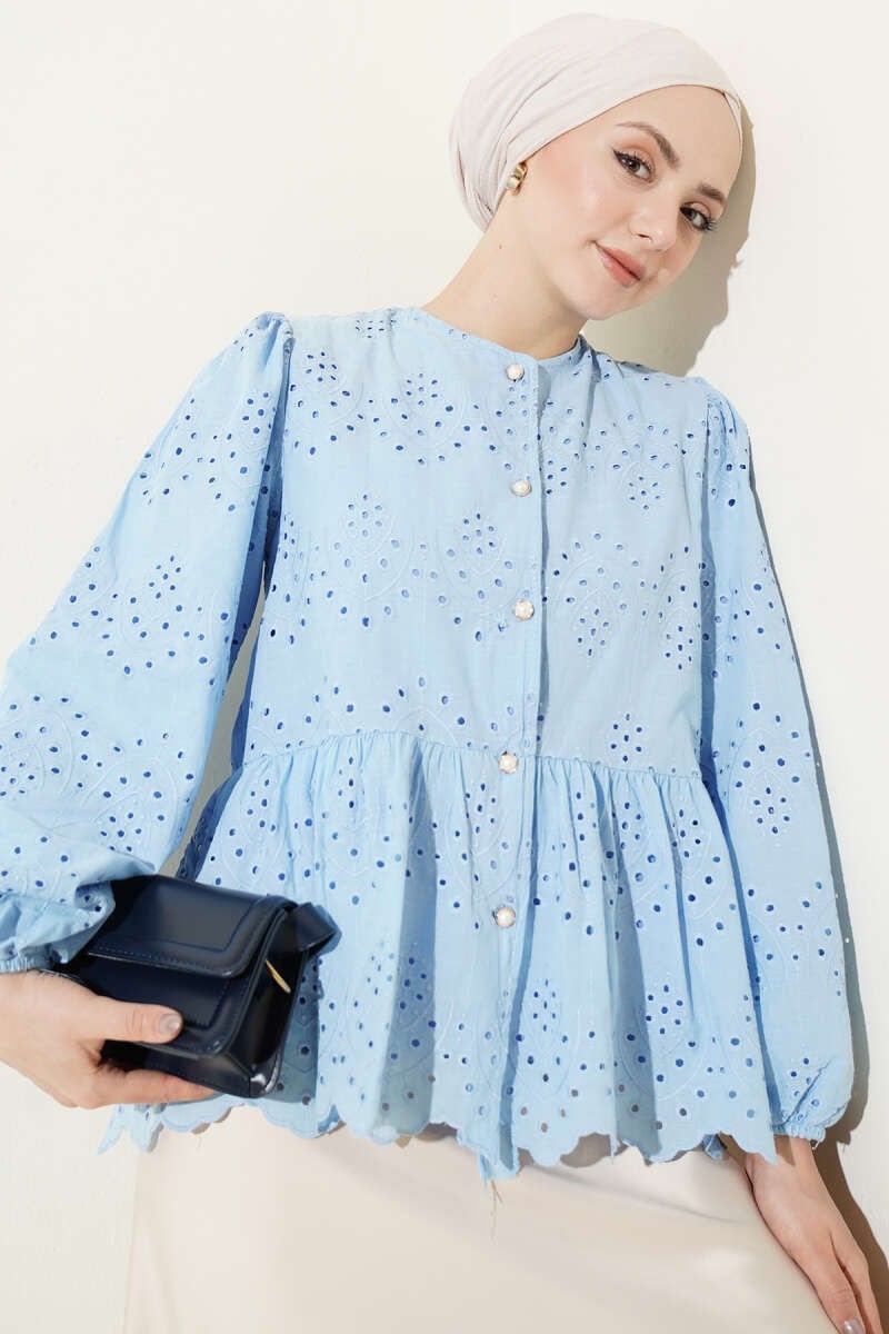 Brit Düğmeli Brodeli Gömlek Mavi (8503-5003-746608)