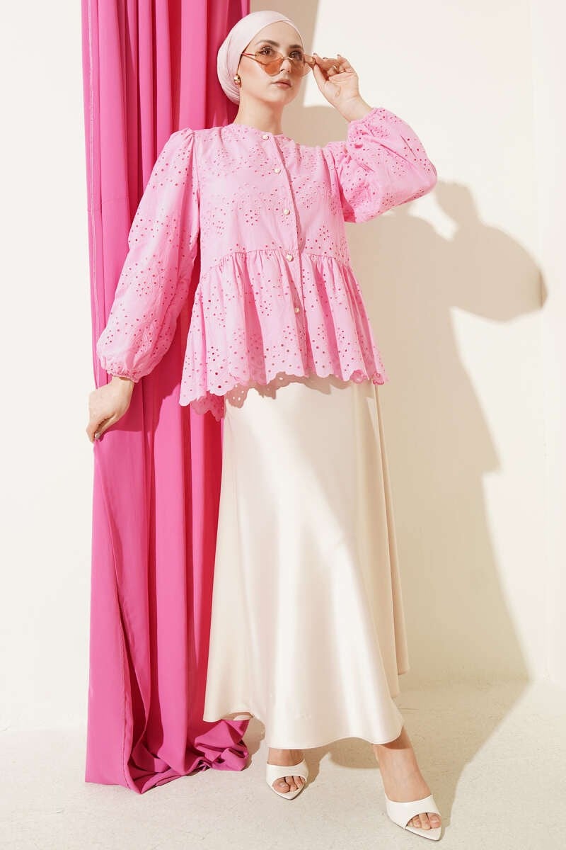 Brit Düğmeli Brodeli Gömlek Pembe (8503-5003-746613)