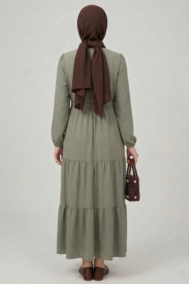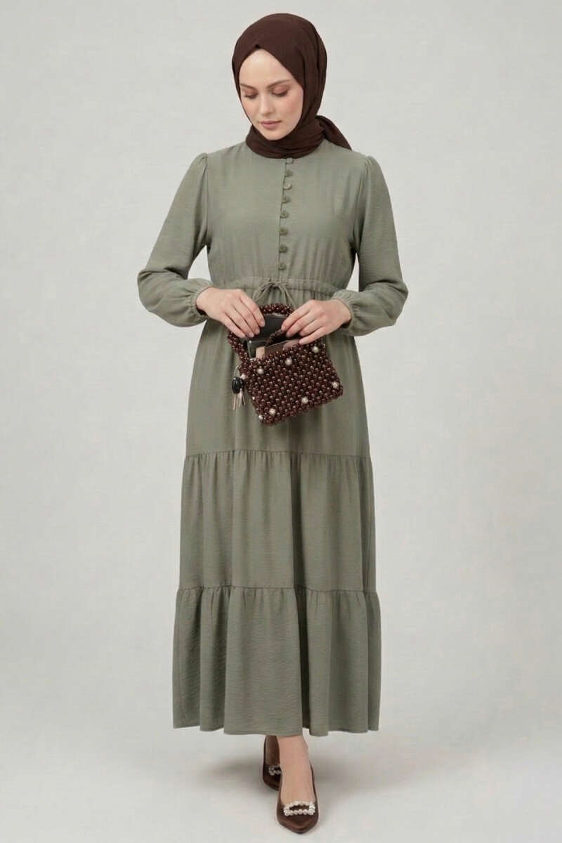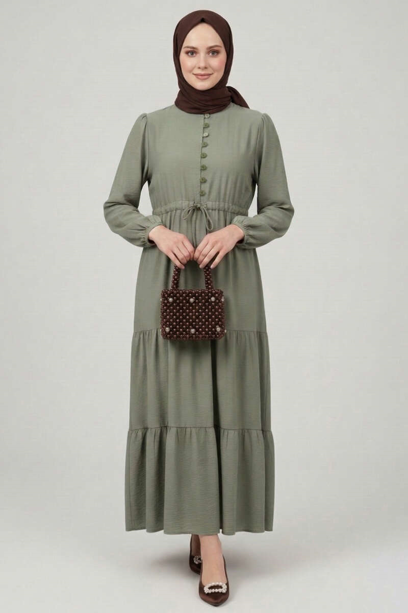 Brit Düğmeli Katlı Elbise Haki (0674-2406-734817)