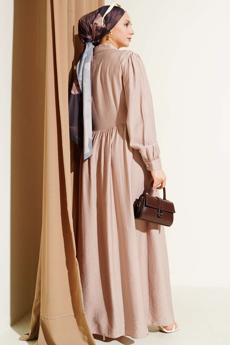 Çapraz Bağlamalı Taş Düğmeli Elbise Bej (8444-8618-724081)