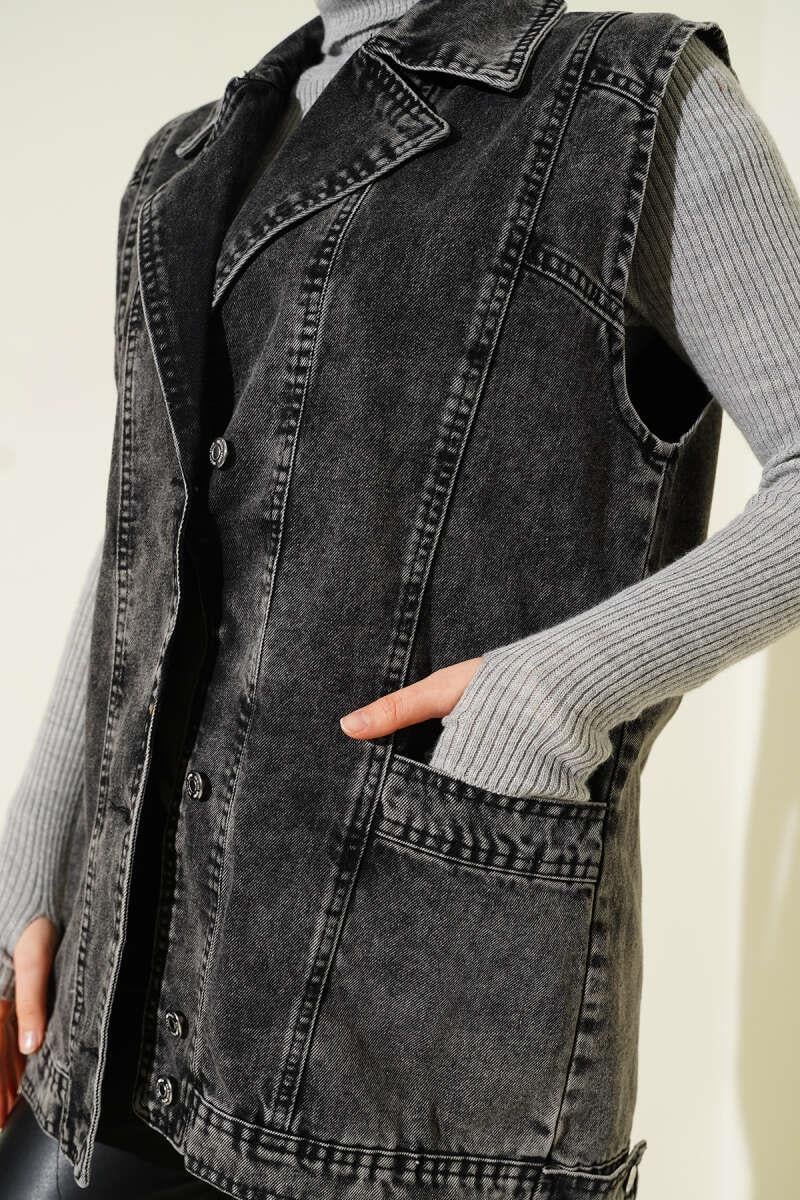Cep Detaylı Kot Yelek Füme (8378-25902-689263)