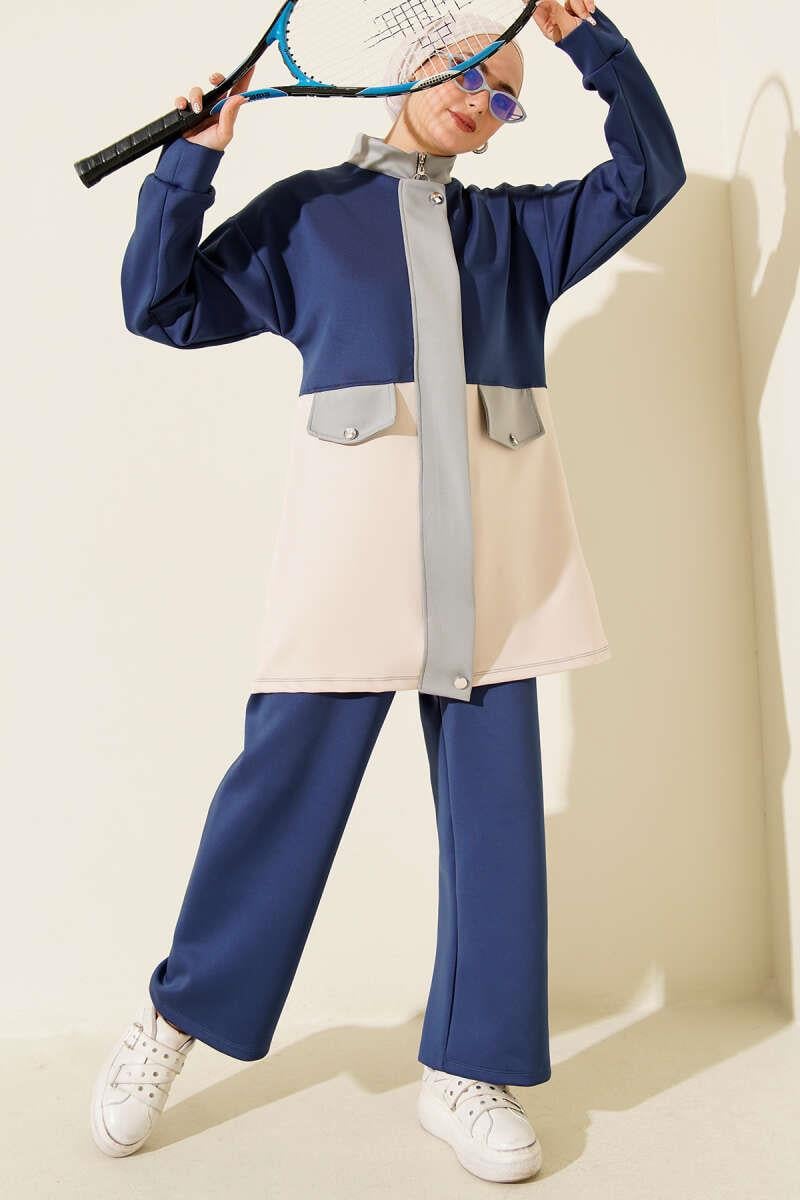 Cep Kapak Detaylı Scuba İkili Takım Lacivert (0829-5343-686105)