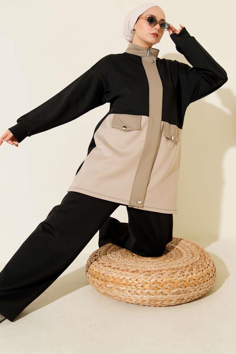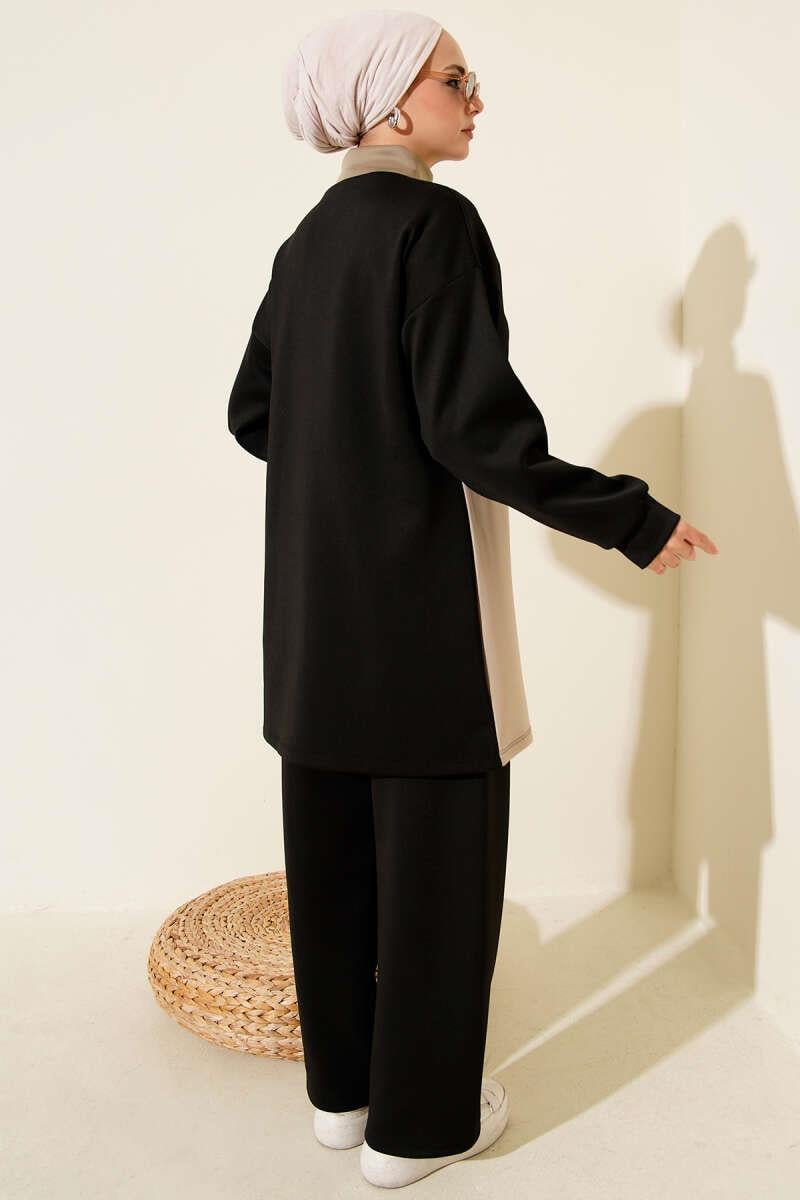 Cep Kapak Detaylı Scuba İkili Takım Siyah (0829-5343-686109)