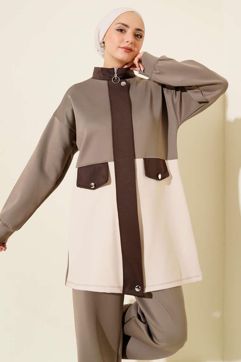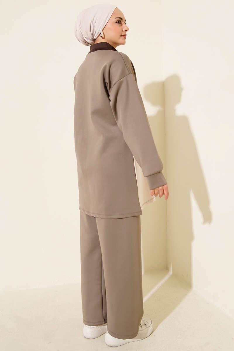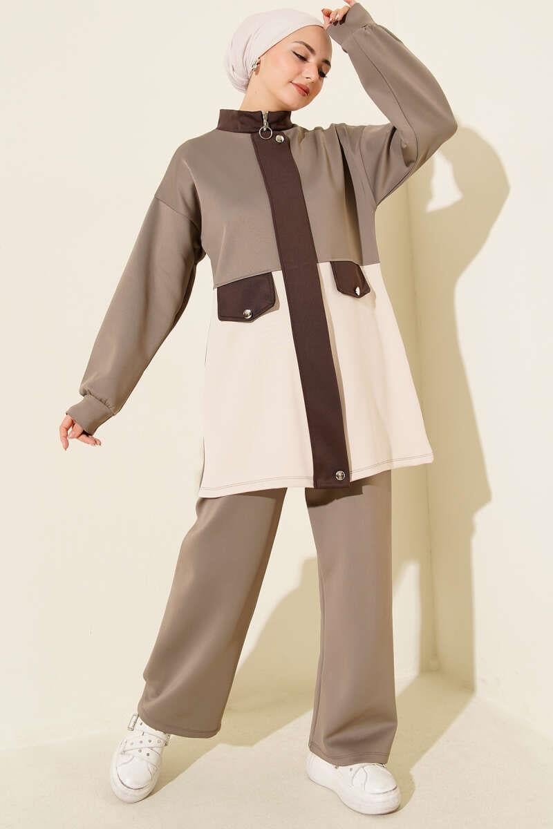 Cep Kapak Detaylı Scuba İkili Takım Vizon (0829-5343-686113)