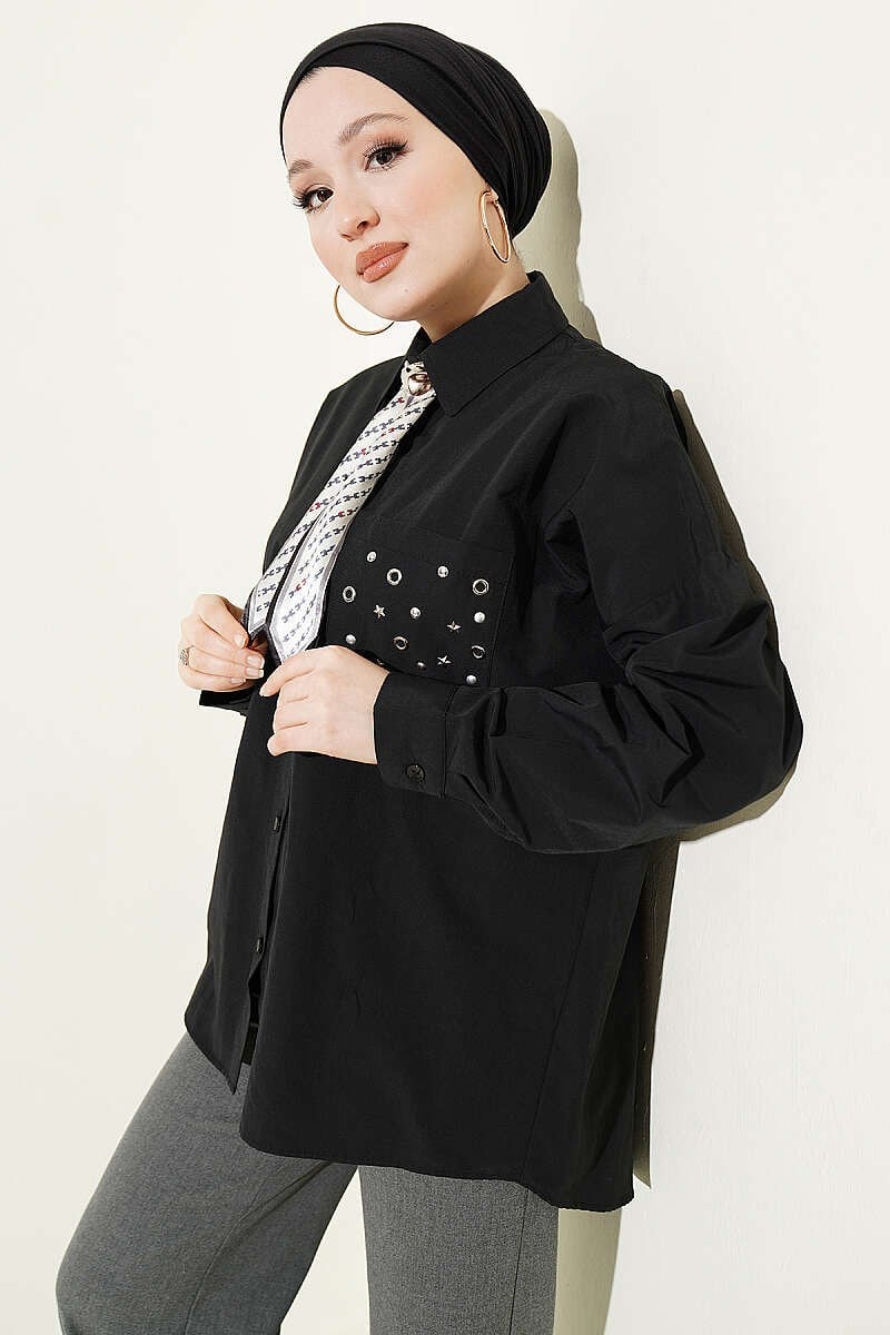 Cep Zımbalı Basic Gömlek Siyah (0853-3081-751071)