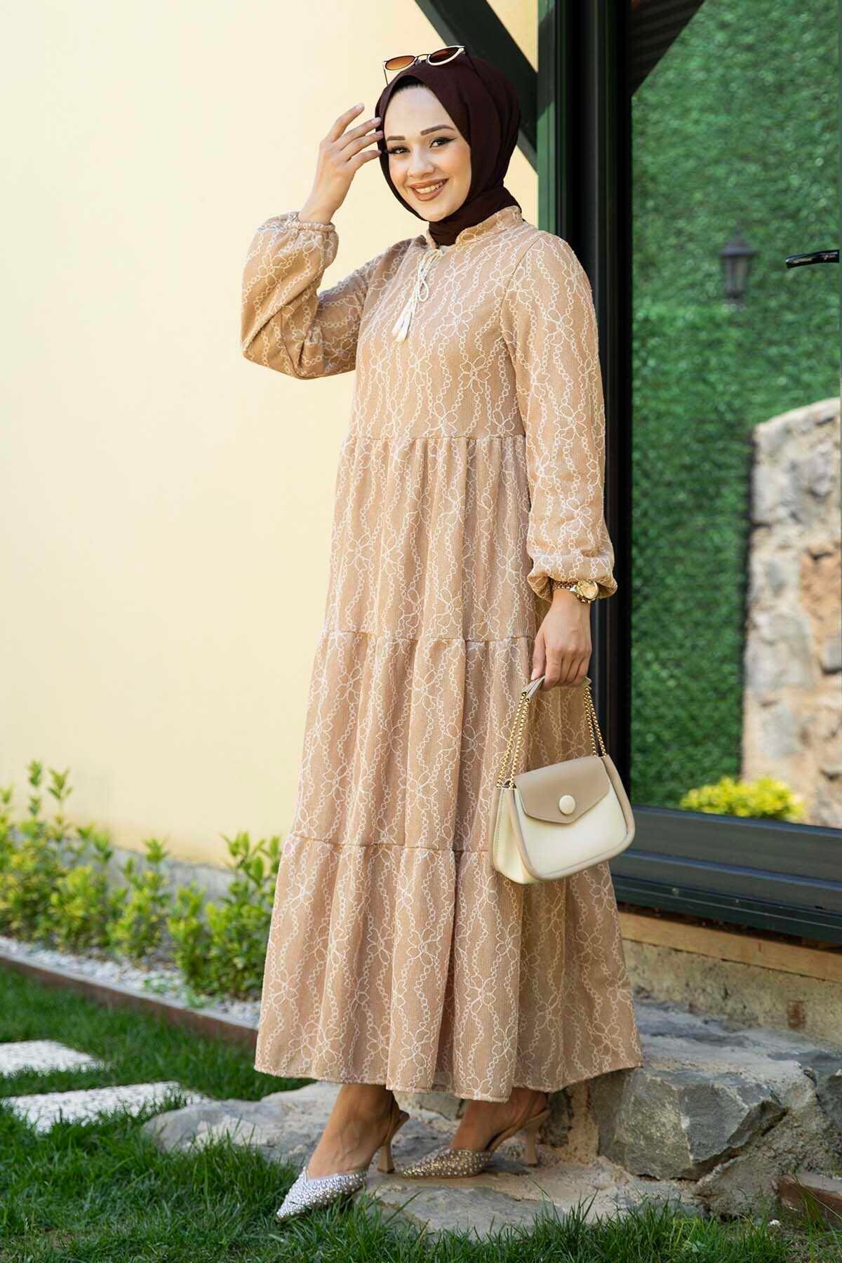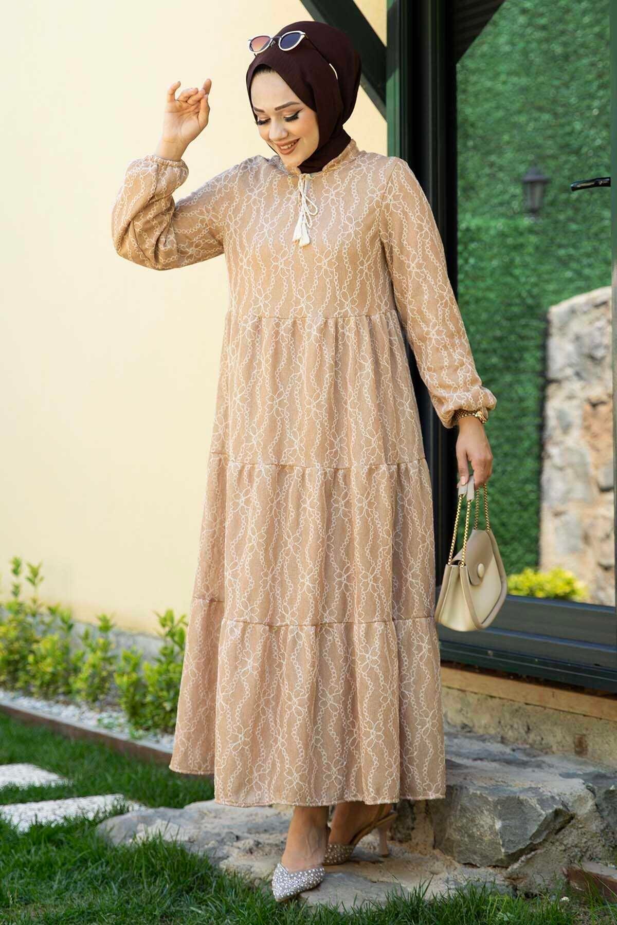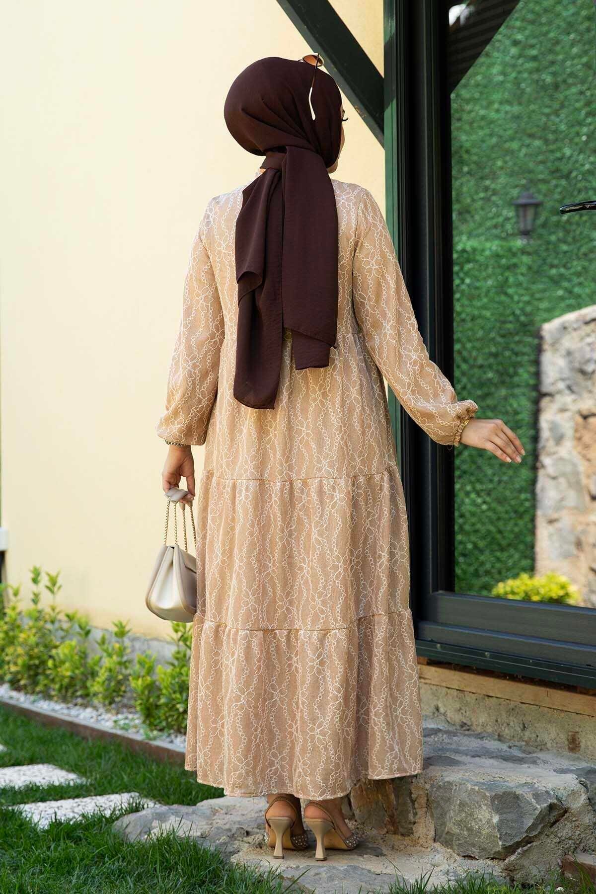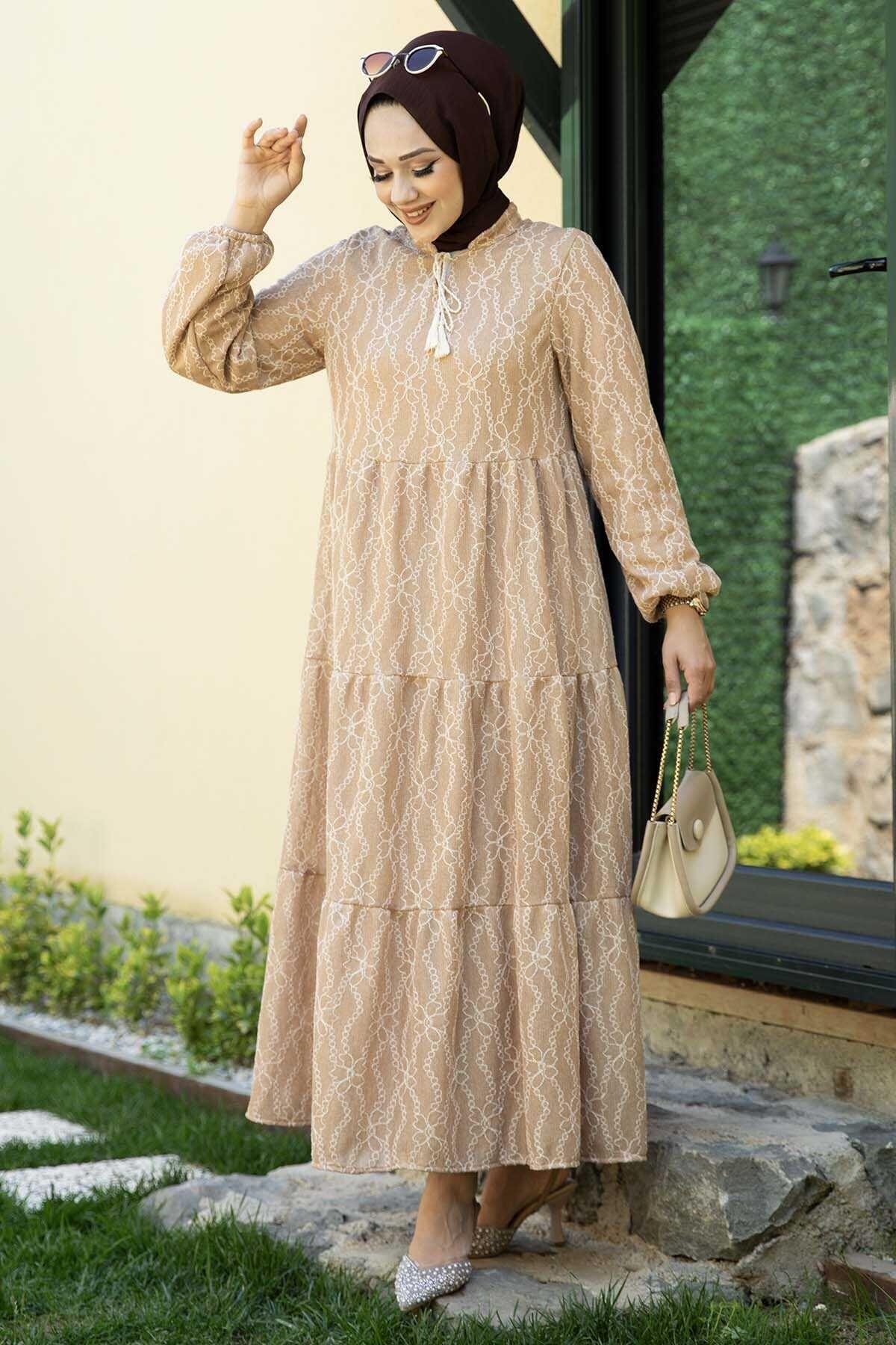 Çiçek Desenli Tesettür Elbise Vizon (120M00820676R6446)