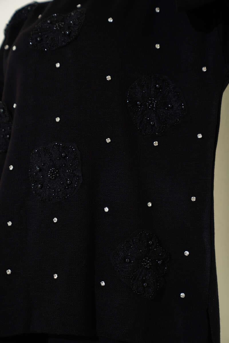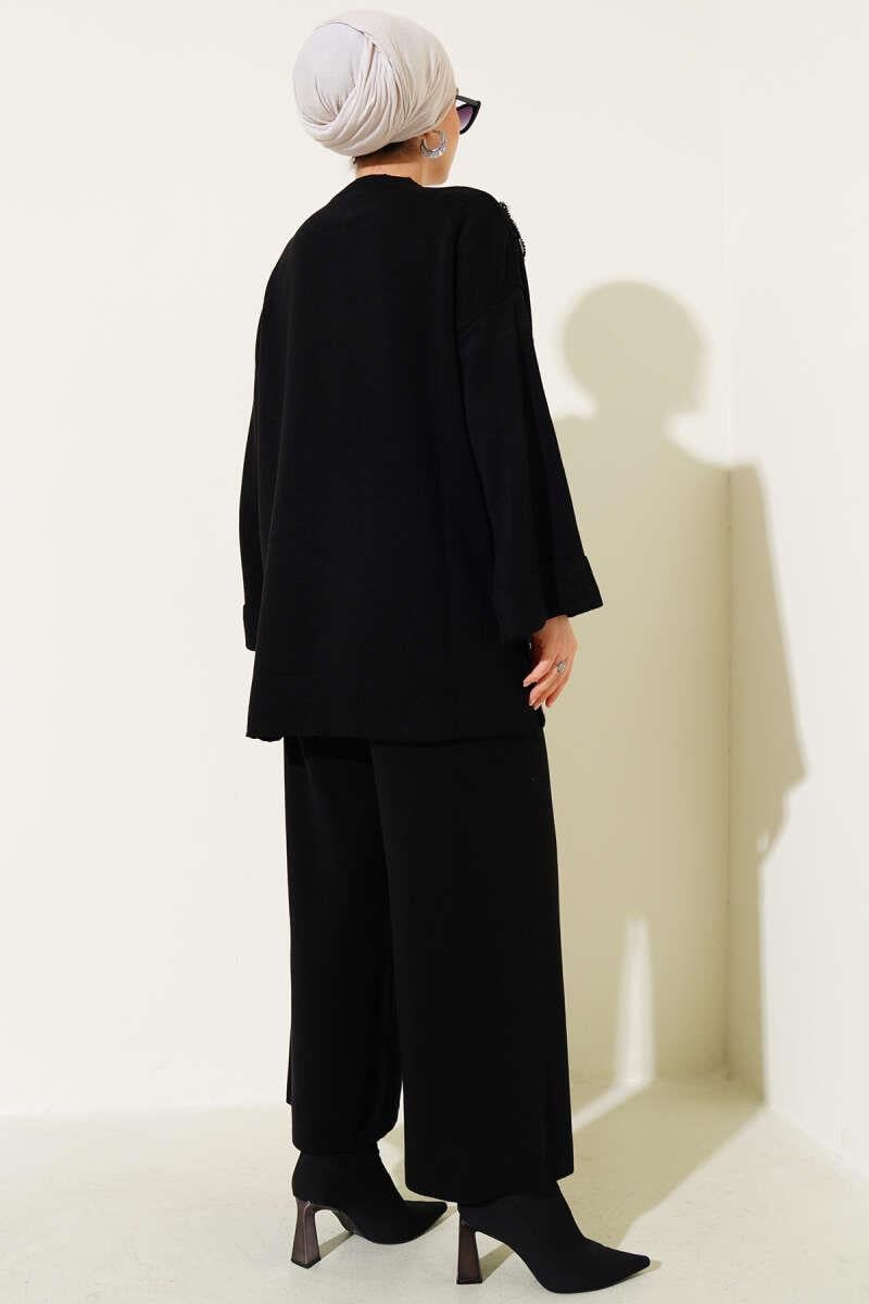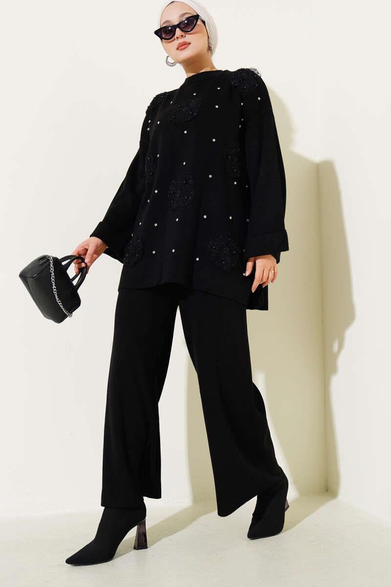 Çiçek Motifli Triko İkili Takım Siyah (0853-2156-672818)