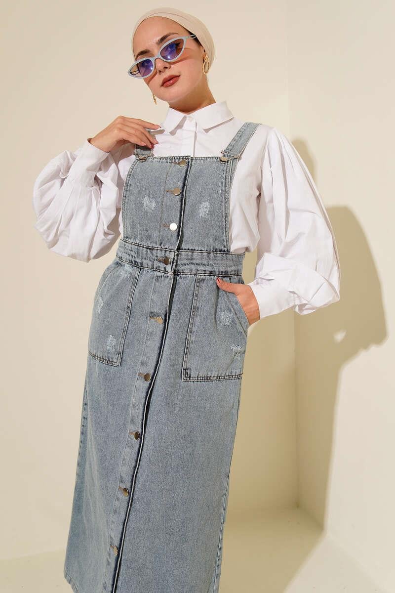 Çift Cepli Kot Askılı Slopet Açık Mavi (0537-2032-679818)