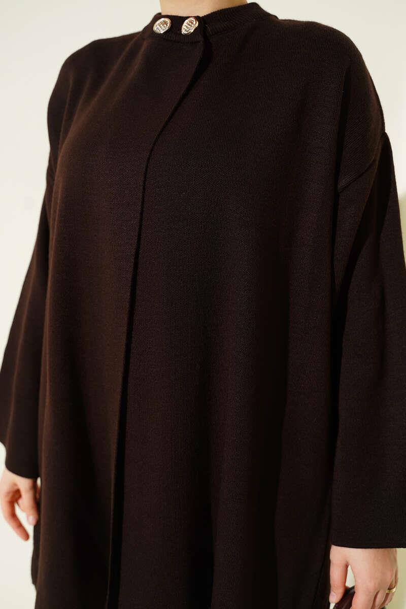 Çift Düğmeli Triko Panço Kahve (8374-9770-685847)