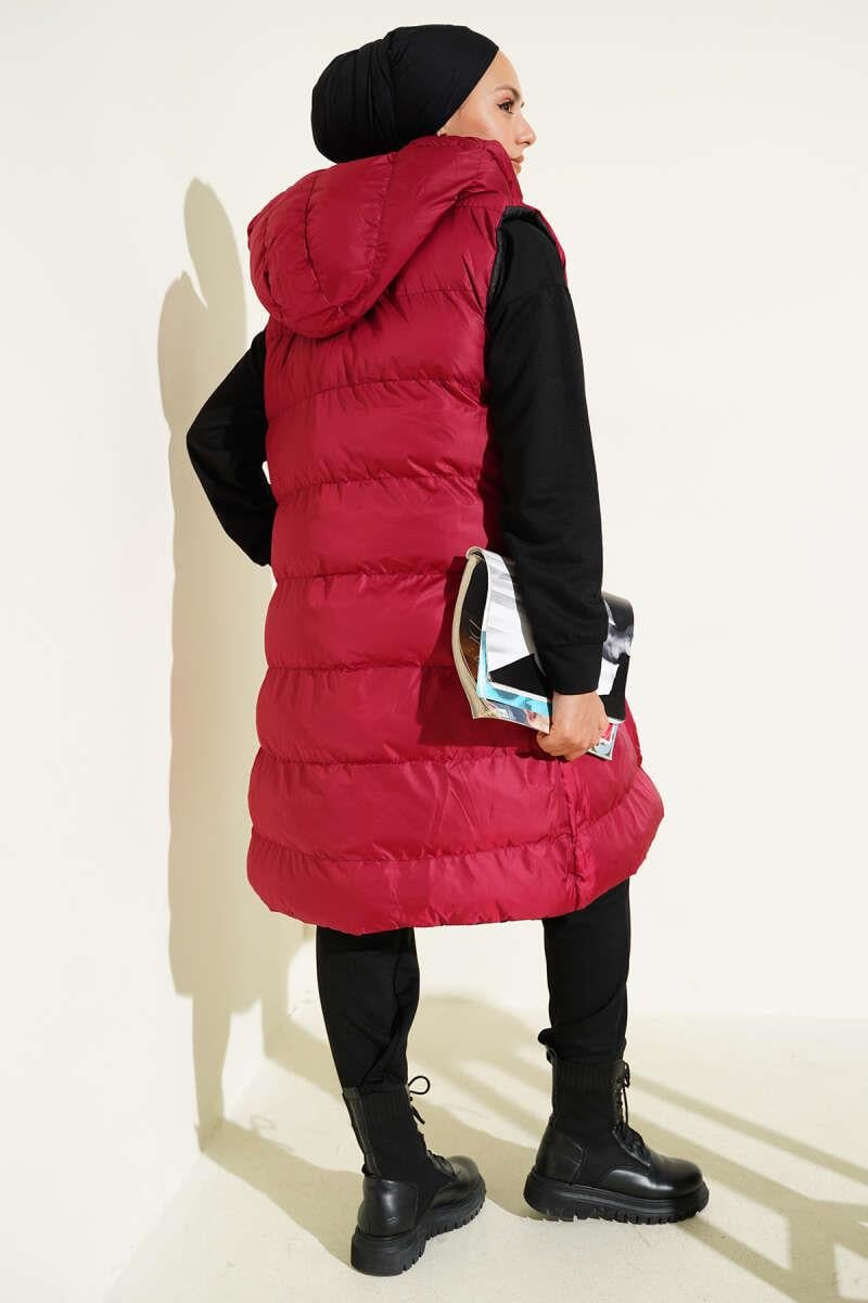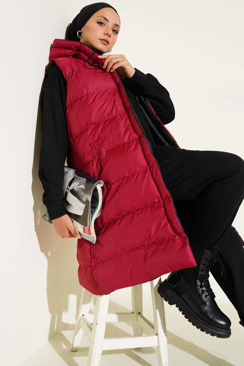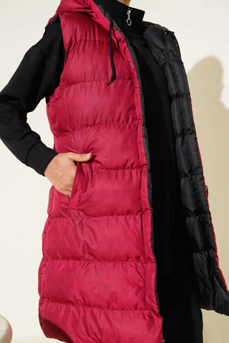 Çift Taraflı Fermuarlı Şişme Yelek Siyah Bordo (0428-7500-667639)