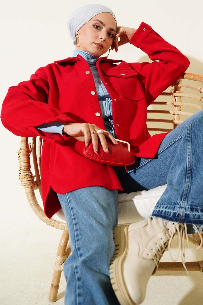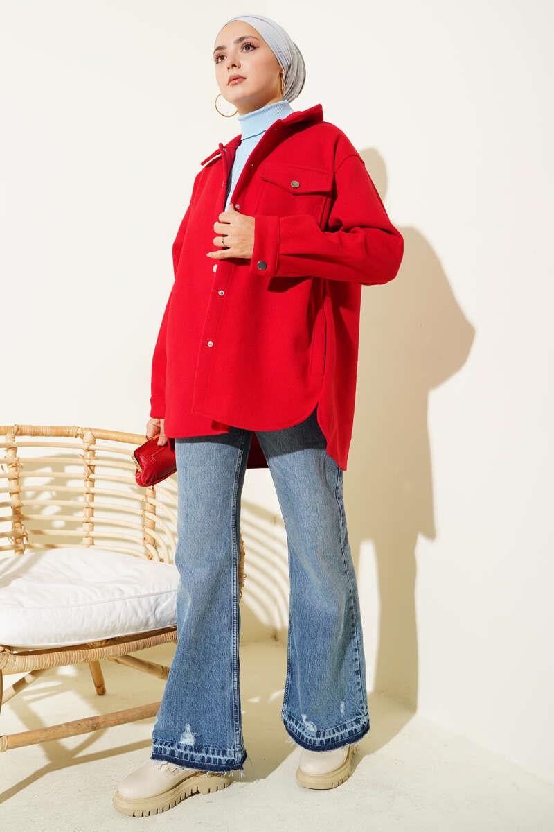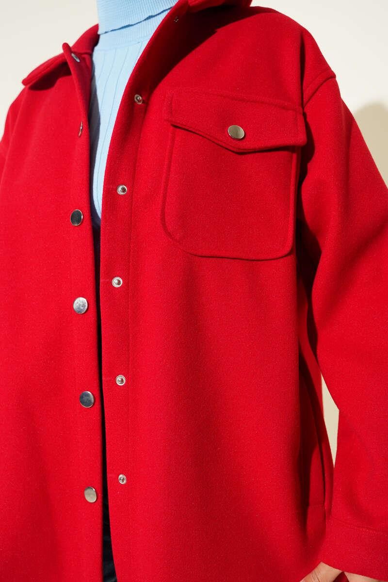 Çıtçıt Düğmeli Gömlek Yaka Kaşe Ceket Kırmızı (0999-6446-678594)
