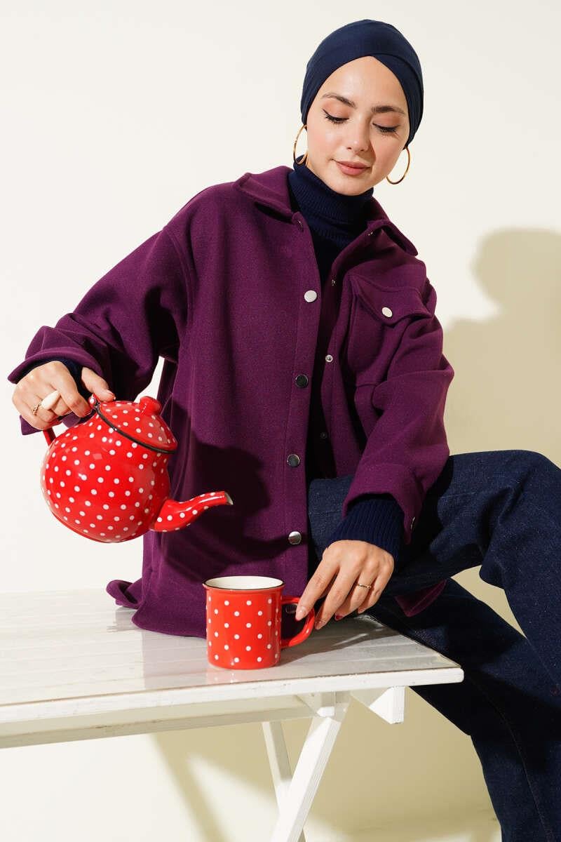 Çıtçıt Düğmeli Gömlek Yaka Kaşe Ceket Mor (0999-6446-678619)