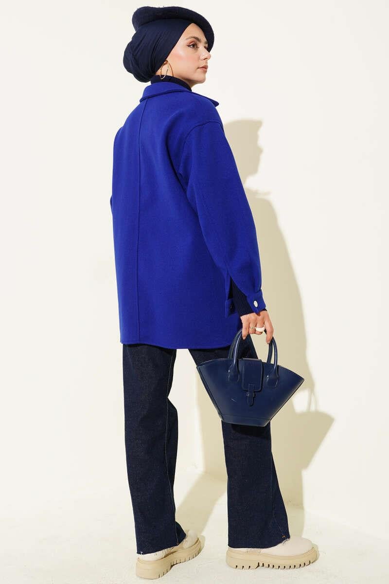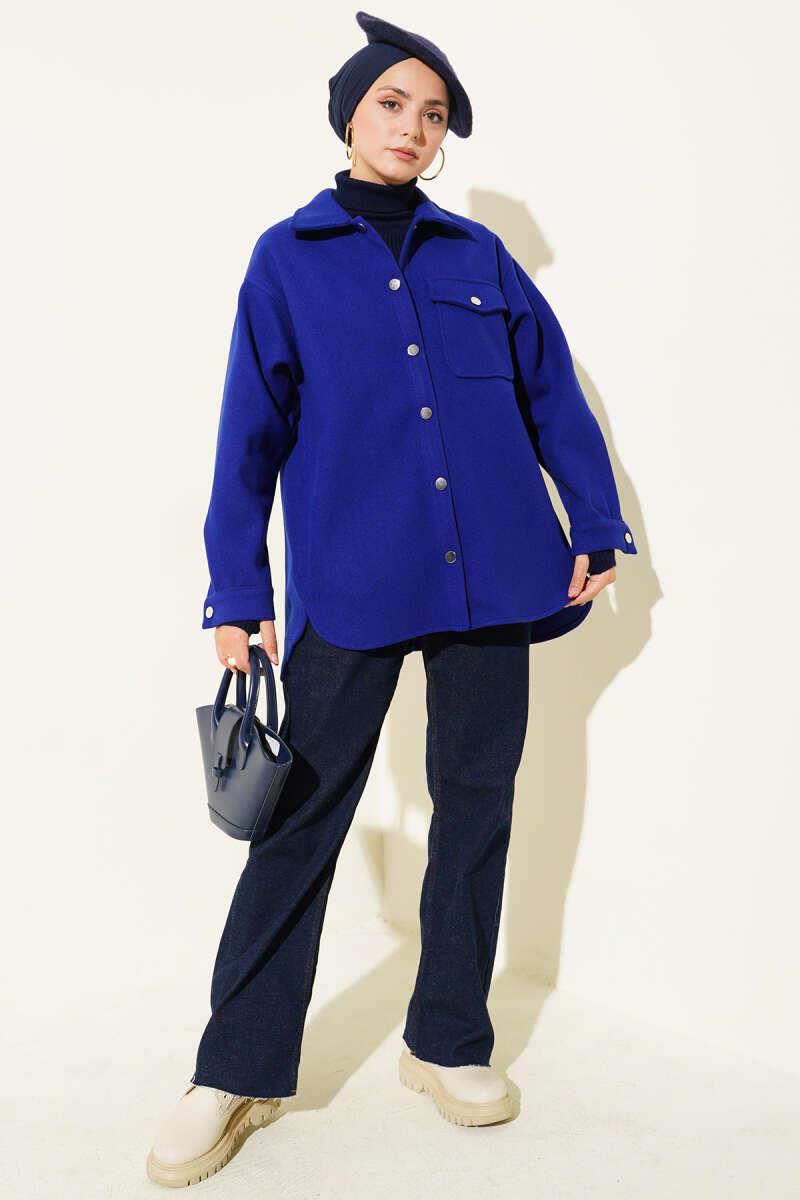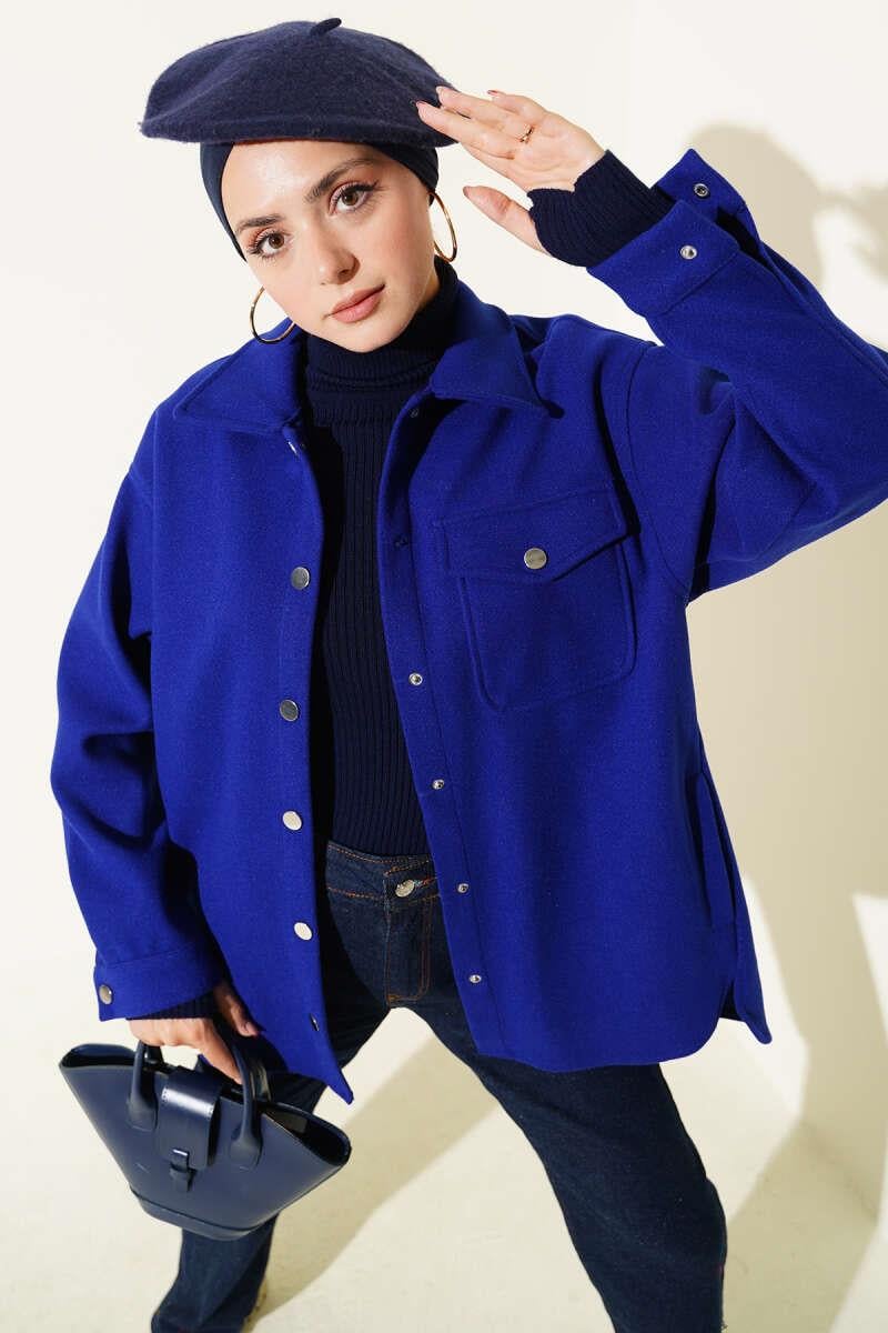 Çıtçıt Düğmeli Gömlek Yaka Kaşe Ceket Saks (0999-6446-678599)