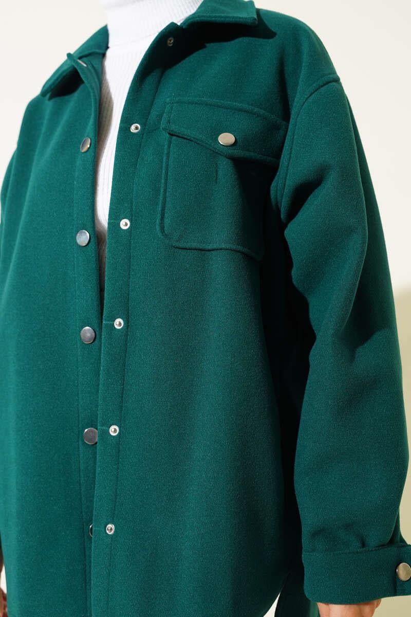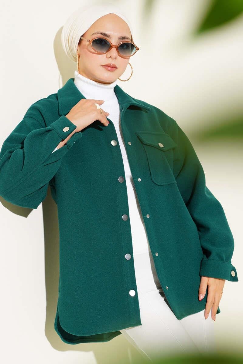Çıtçıt Düğmeli Gömlek Yaka Kaşe Ceket Zümrüt (0999-6446-678614)