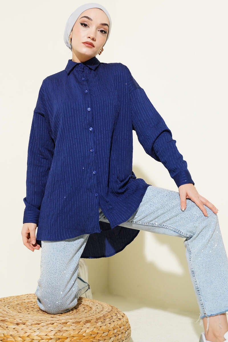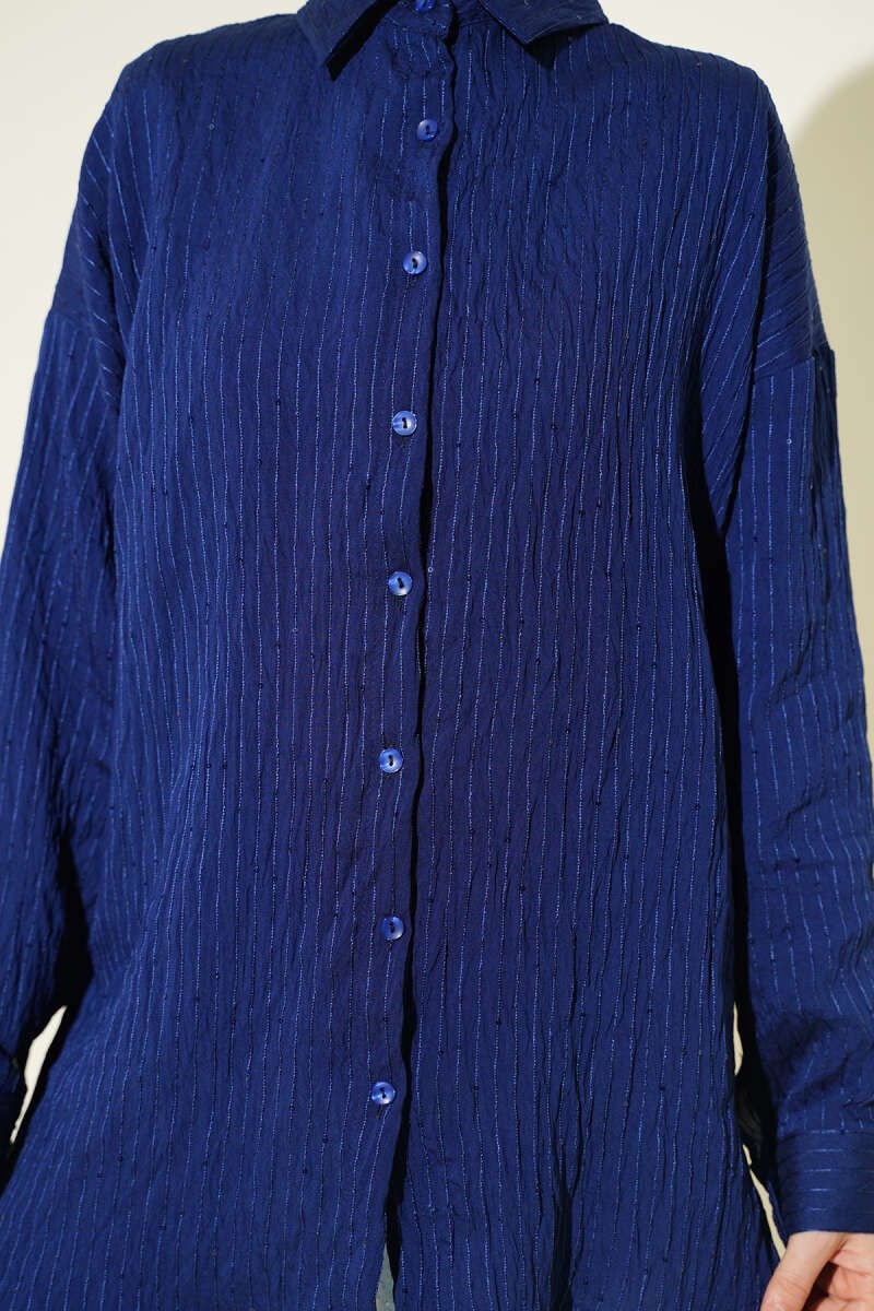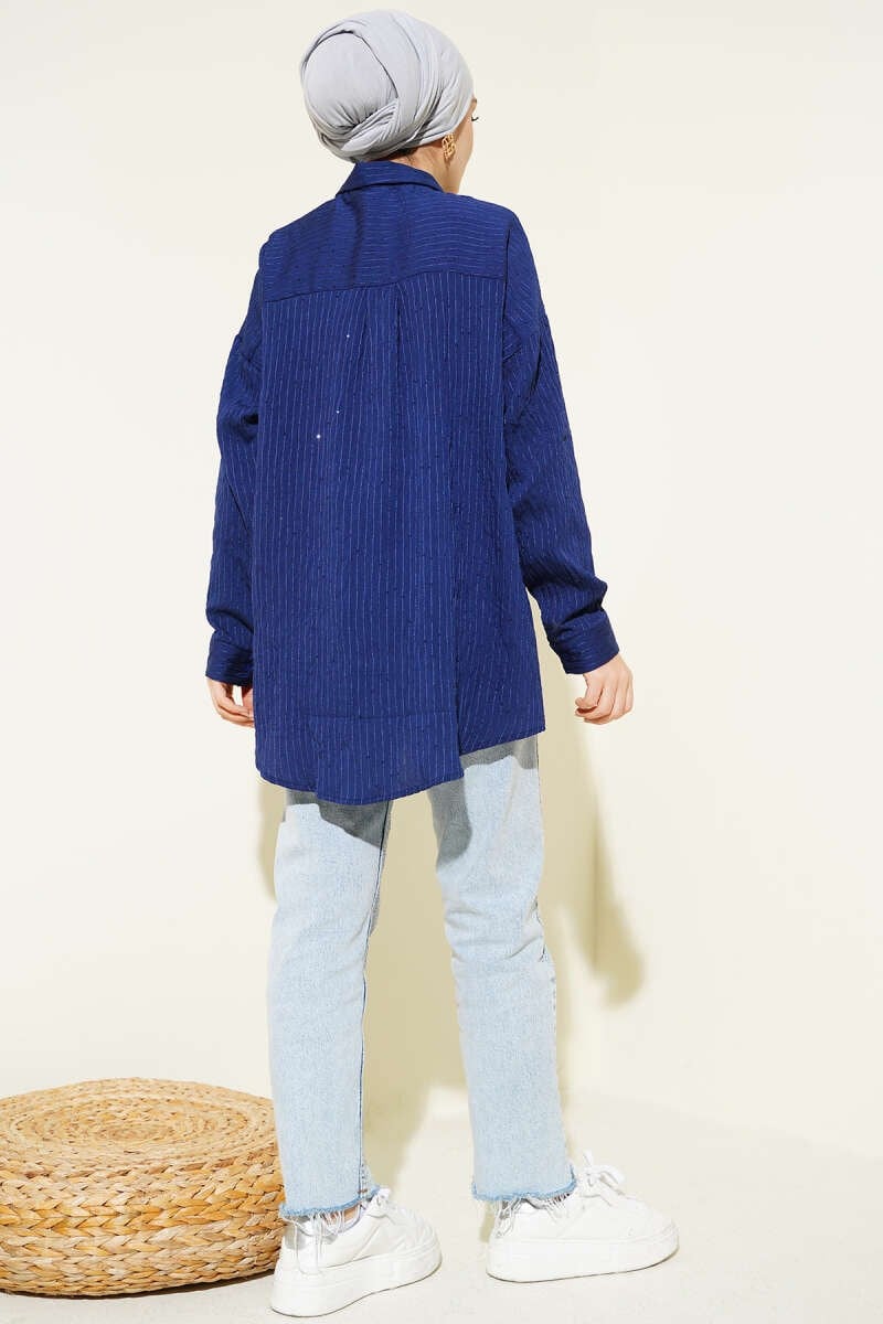 Çizgi Dikişli Pullu Oversize Gömlek Lacivert (0674-874-742000)