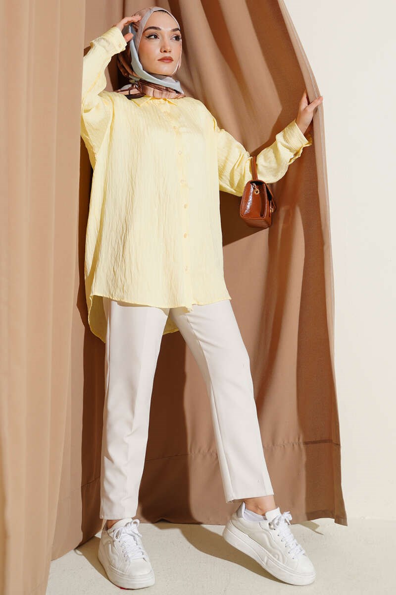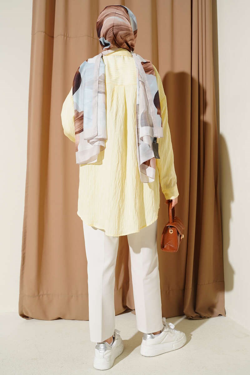Çizgi Dikişli Pullu Oversize Gömlek Sarı (0674-874-742004)
