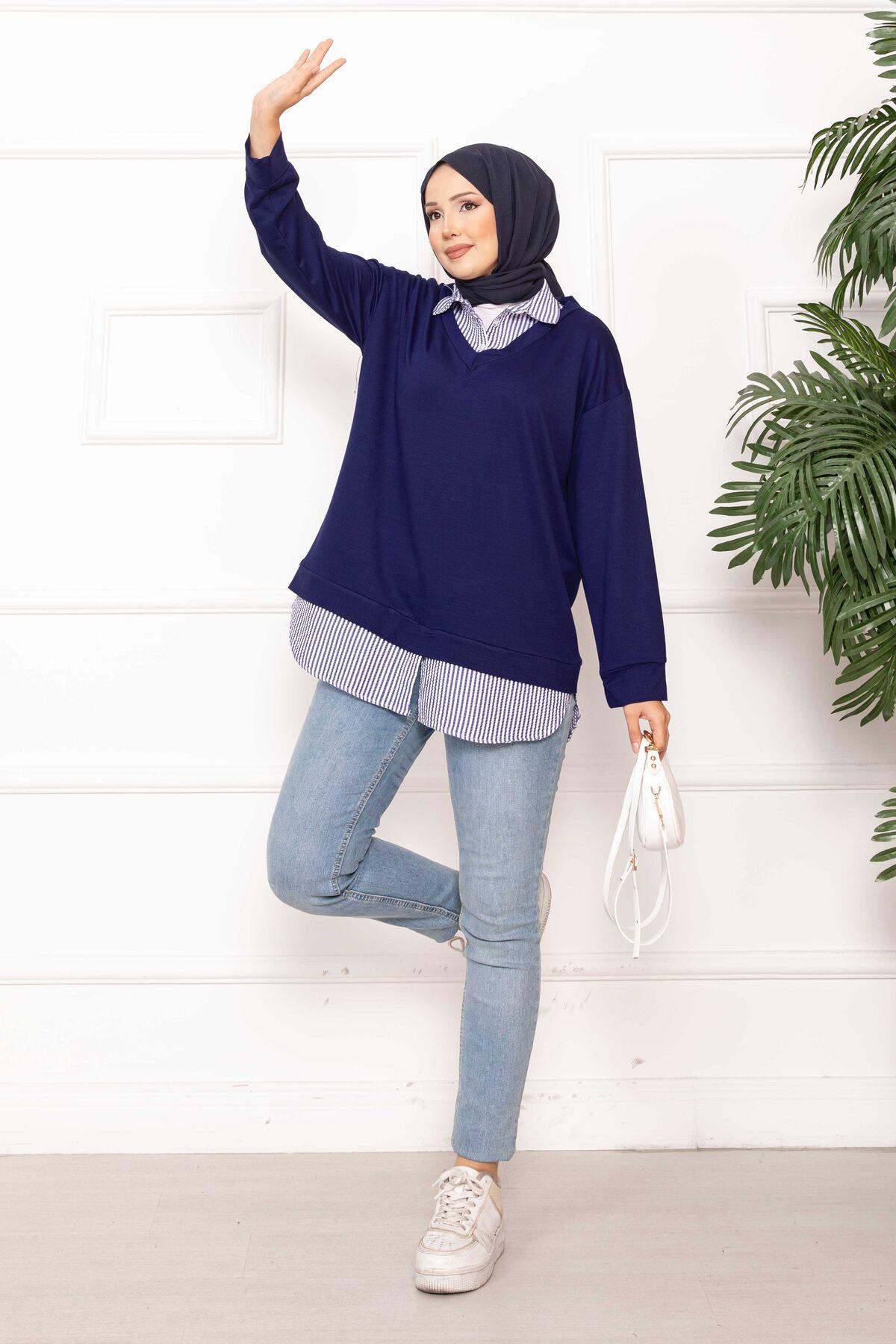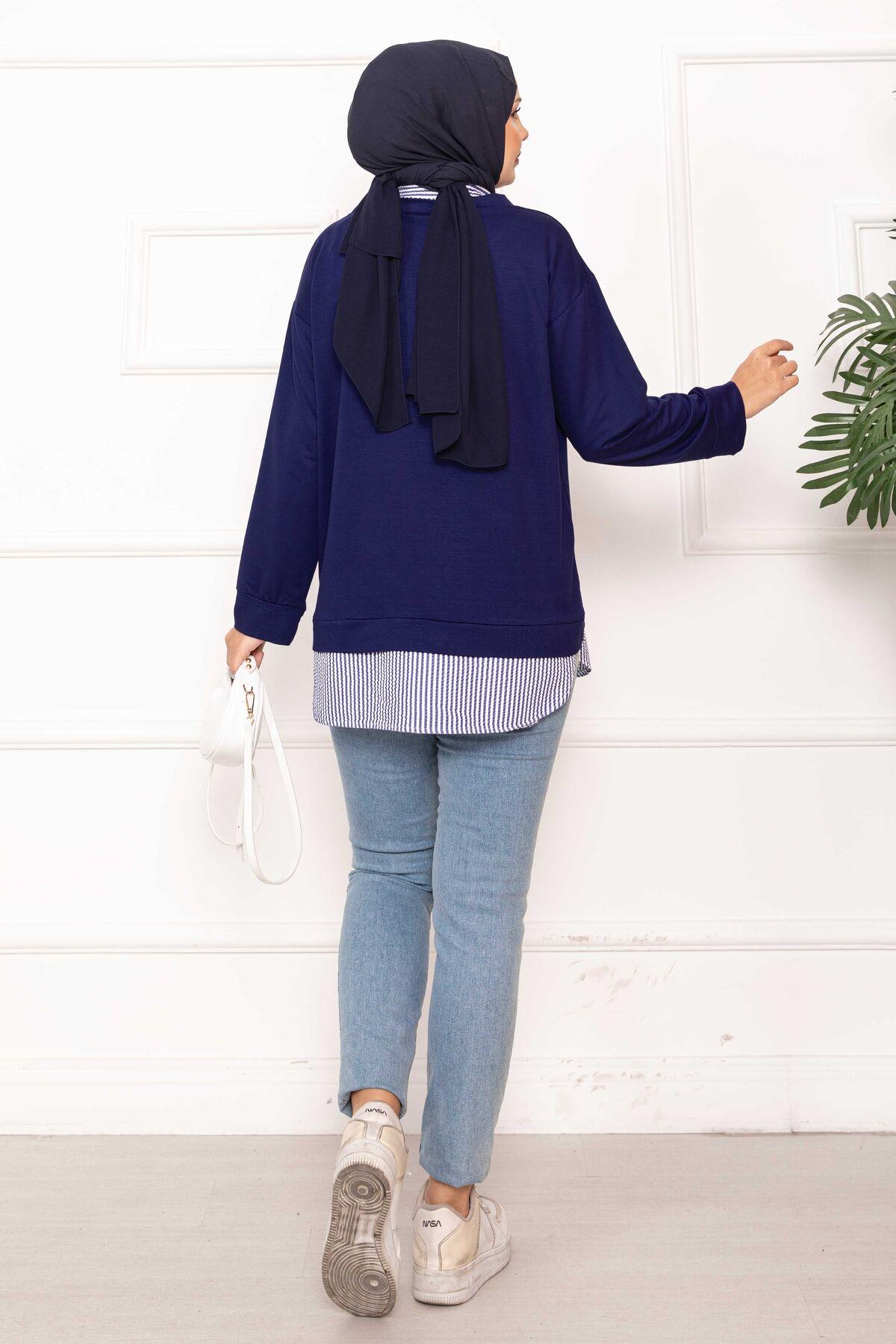 Çizgili Gömlek Garnili Tunik Lacivert (125M00313674R331)