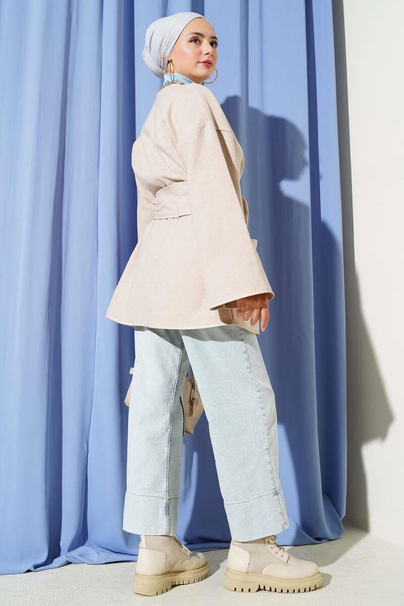 Deri Biyeli Cepli Ceket Bej (0582-13095-683391)
