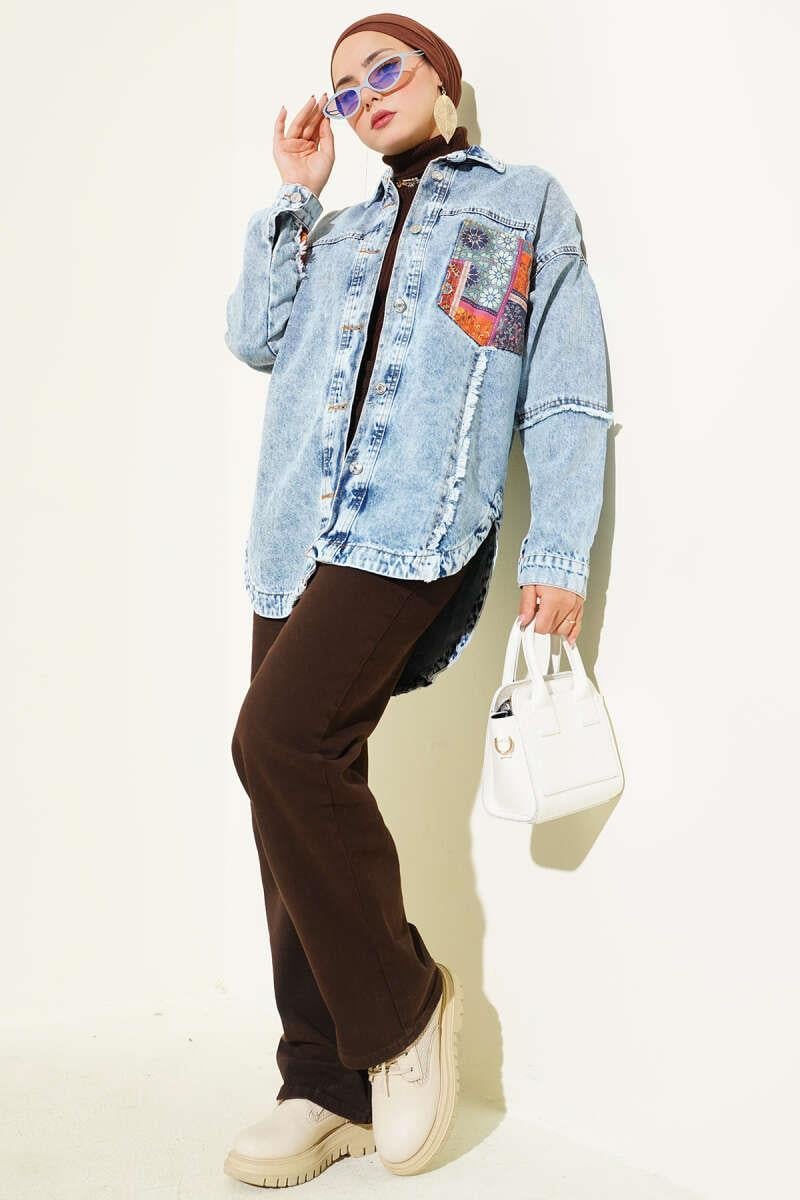 Etnik Desenli Püsküllü Kot Ceket Kot Mavisi (8378-25906-683285)