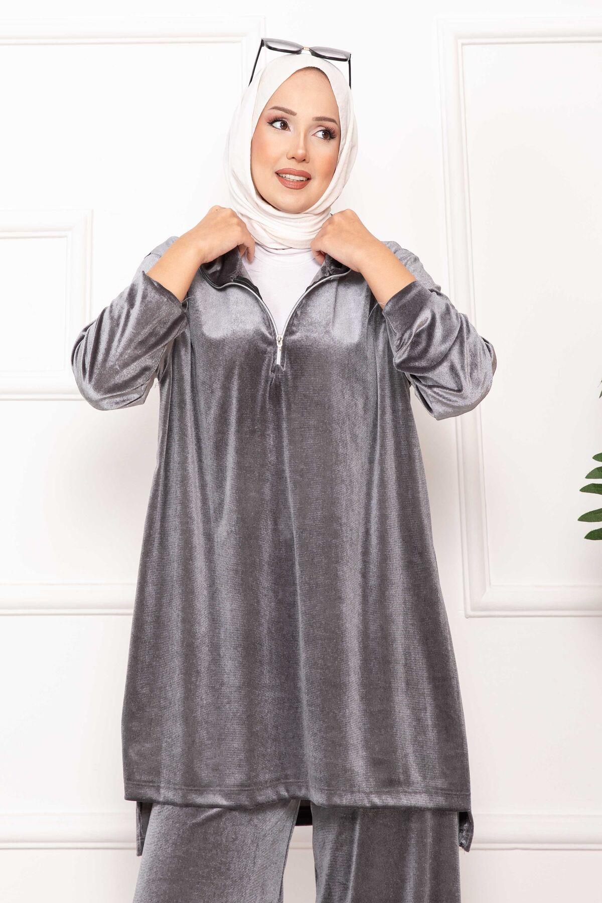 Fermuar Detaylı Kadife İkili Takım Gri (125M00616476R19STD)