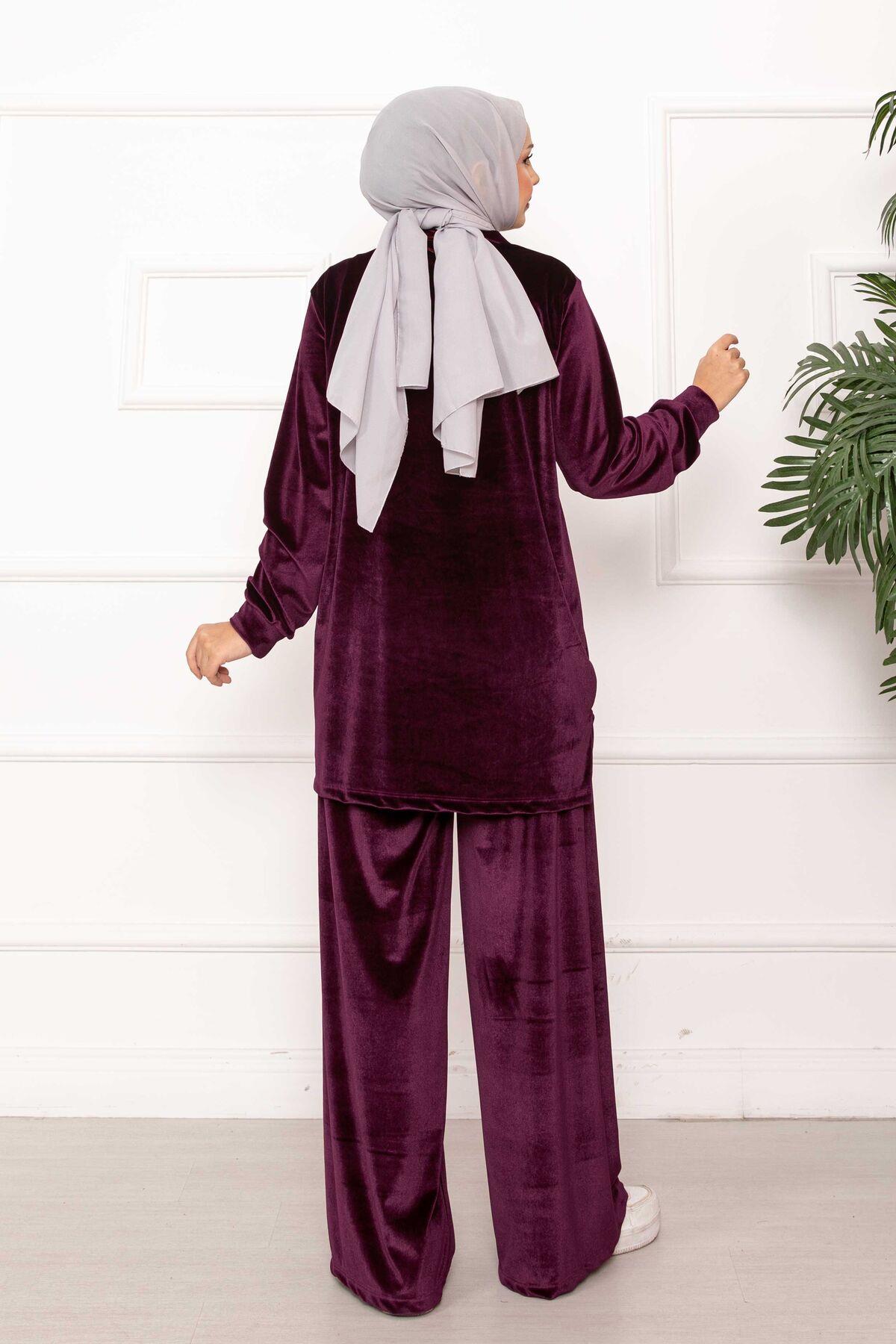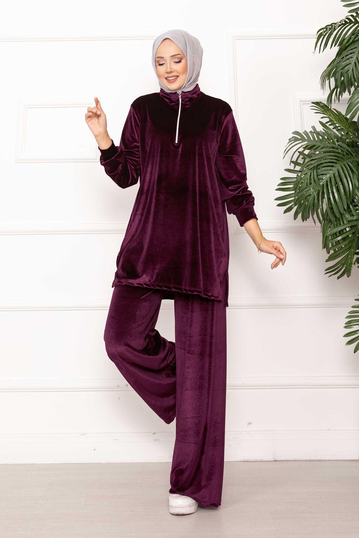 Fermuar Detaylı Kadife İkili Takım Mürdüm (125M00616476R42STD)