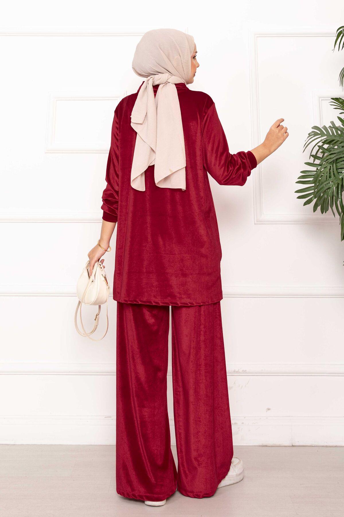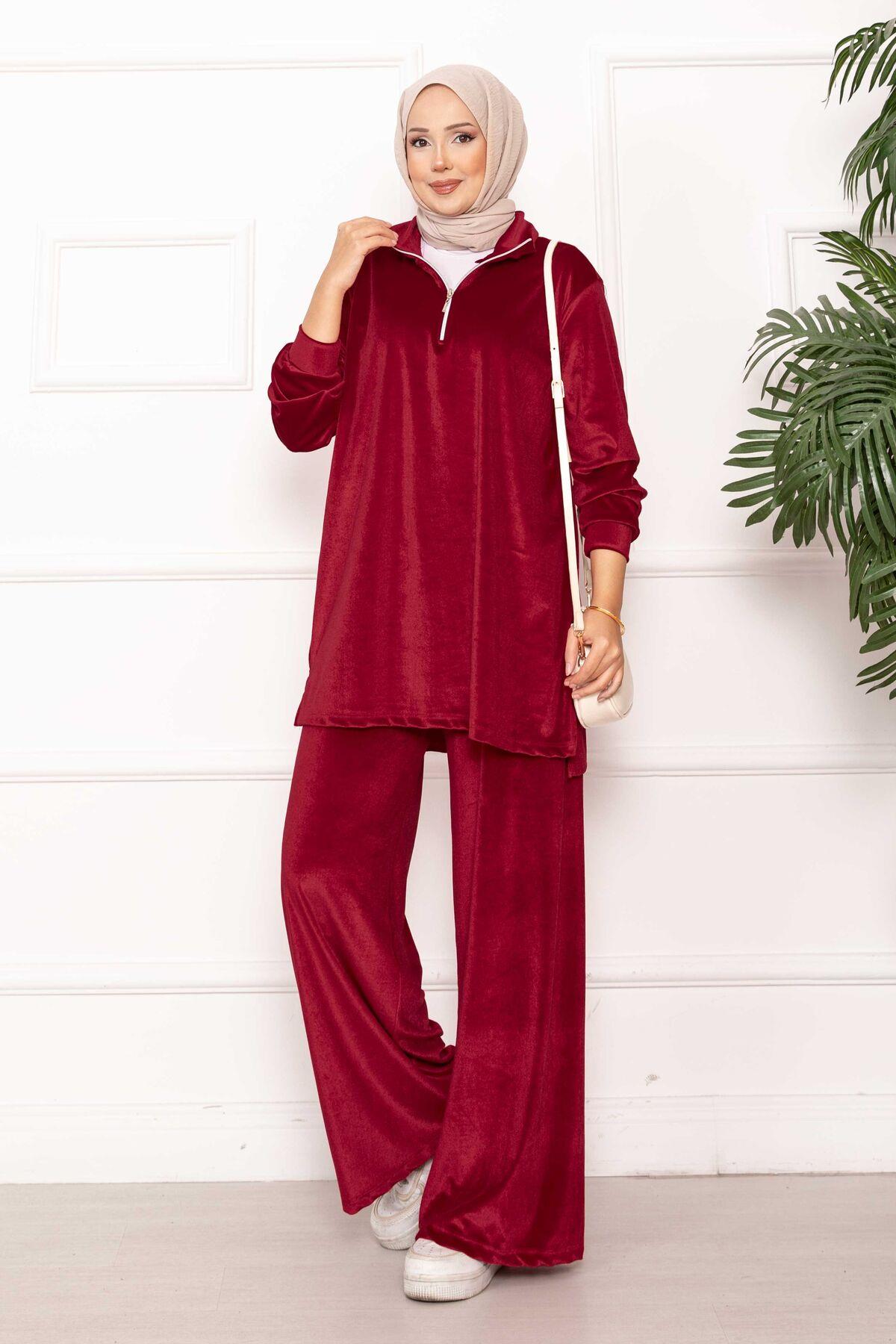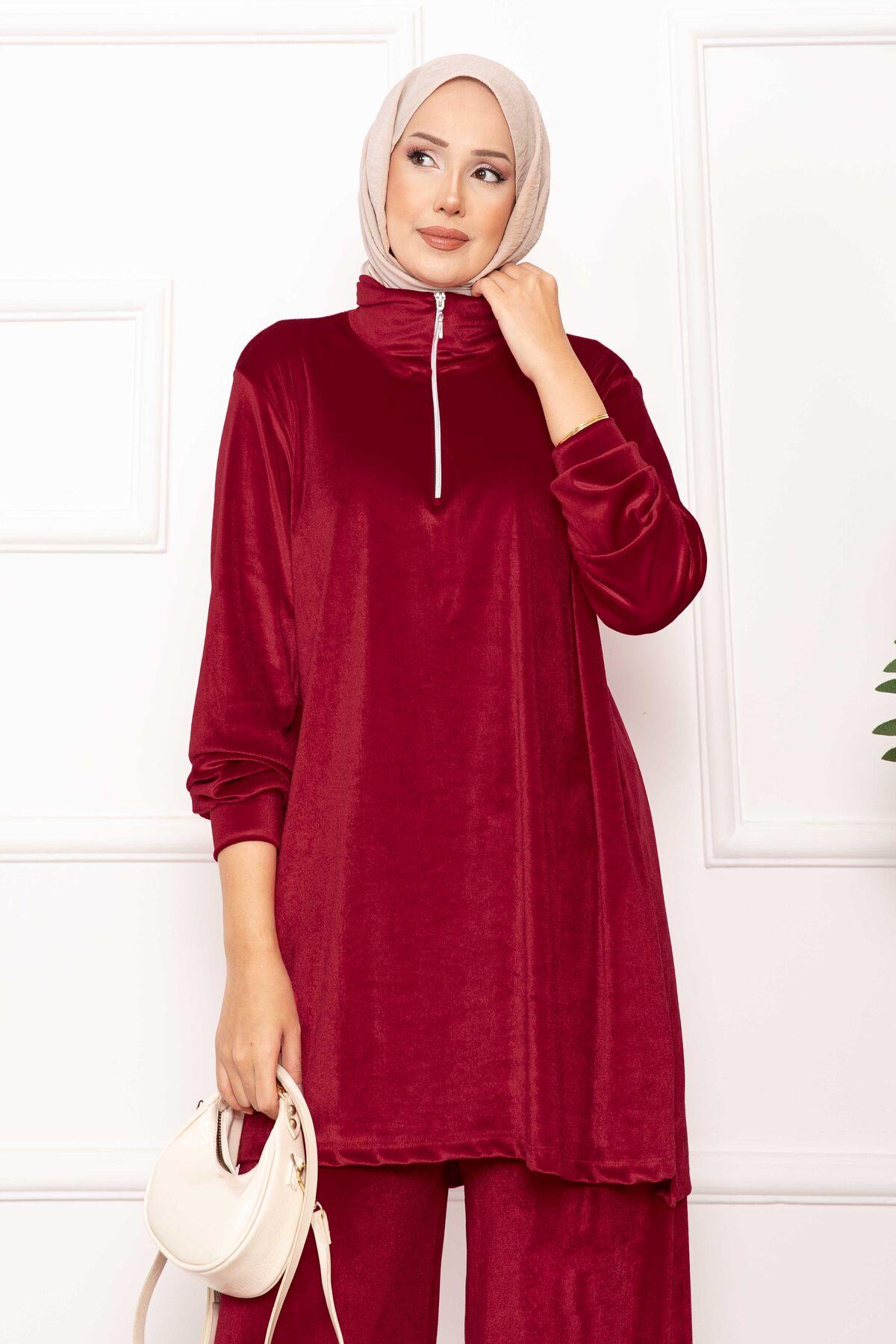 Fermuar Detaylı Kadife İkili Takım Şarabi (125M00616476R57STD)