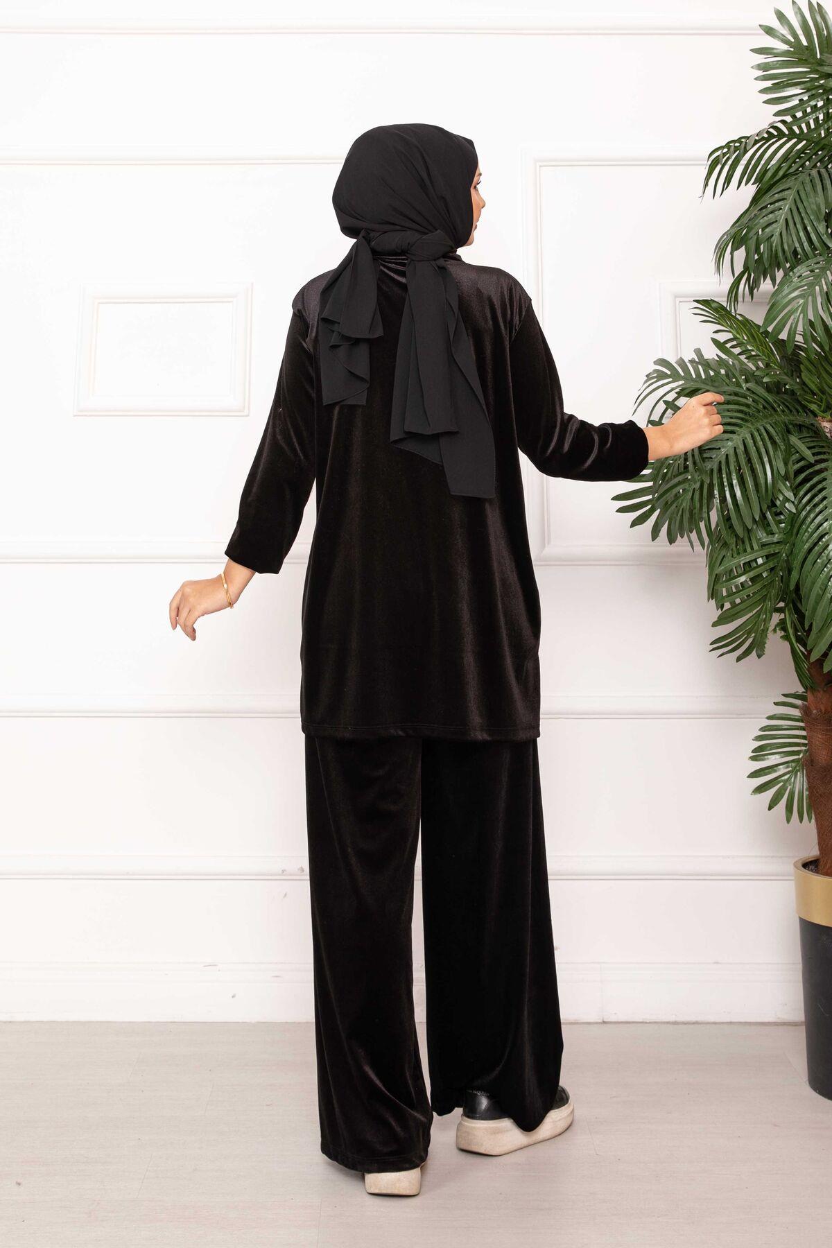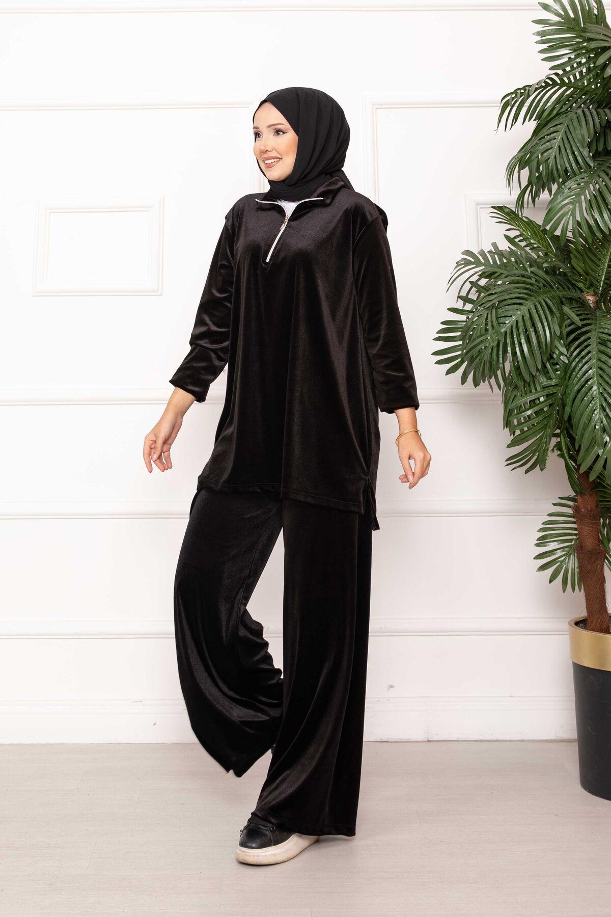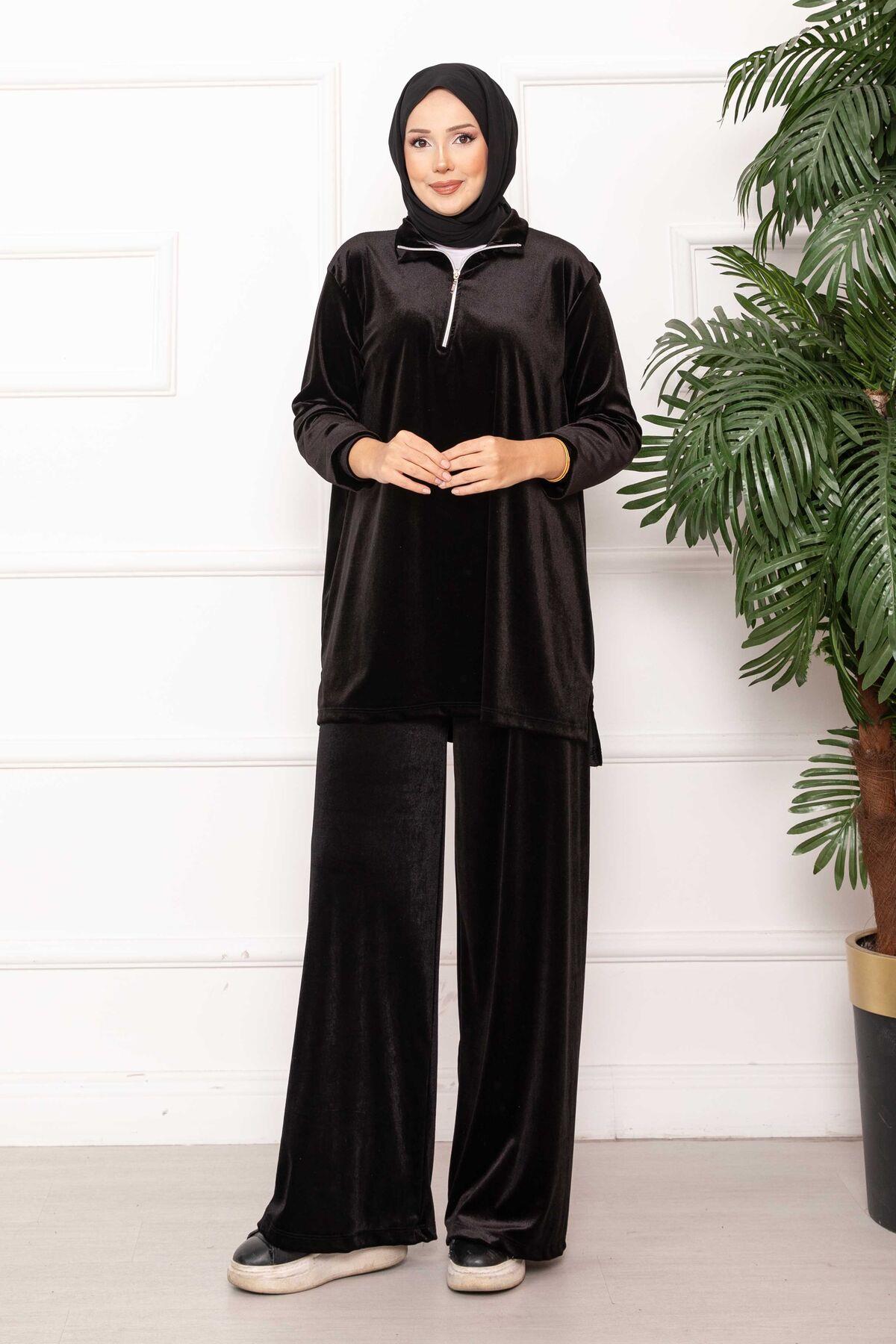 Fermuar Detaylı Kadife İkili Takım Siyah (125M00616476R52STD)