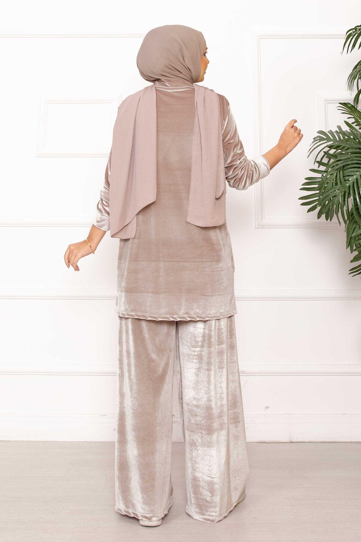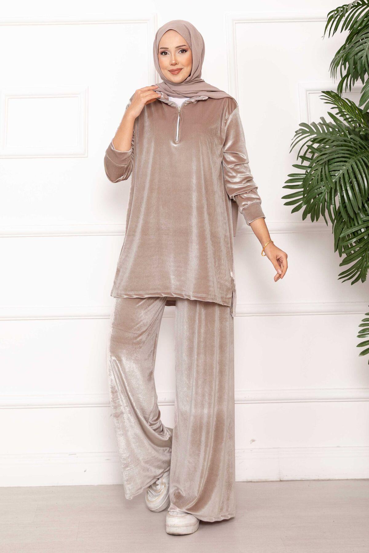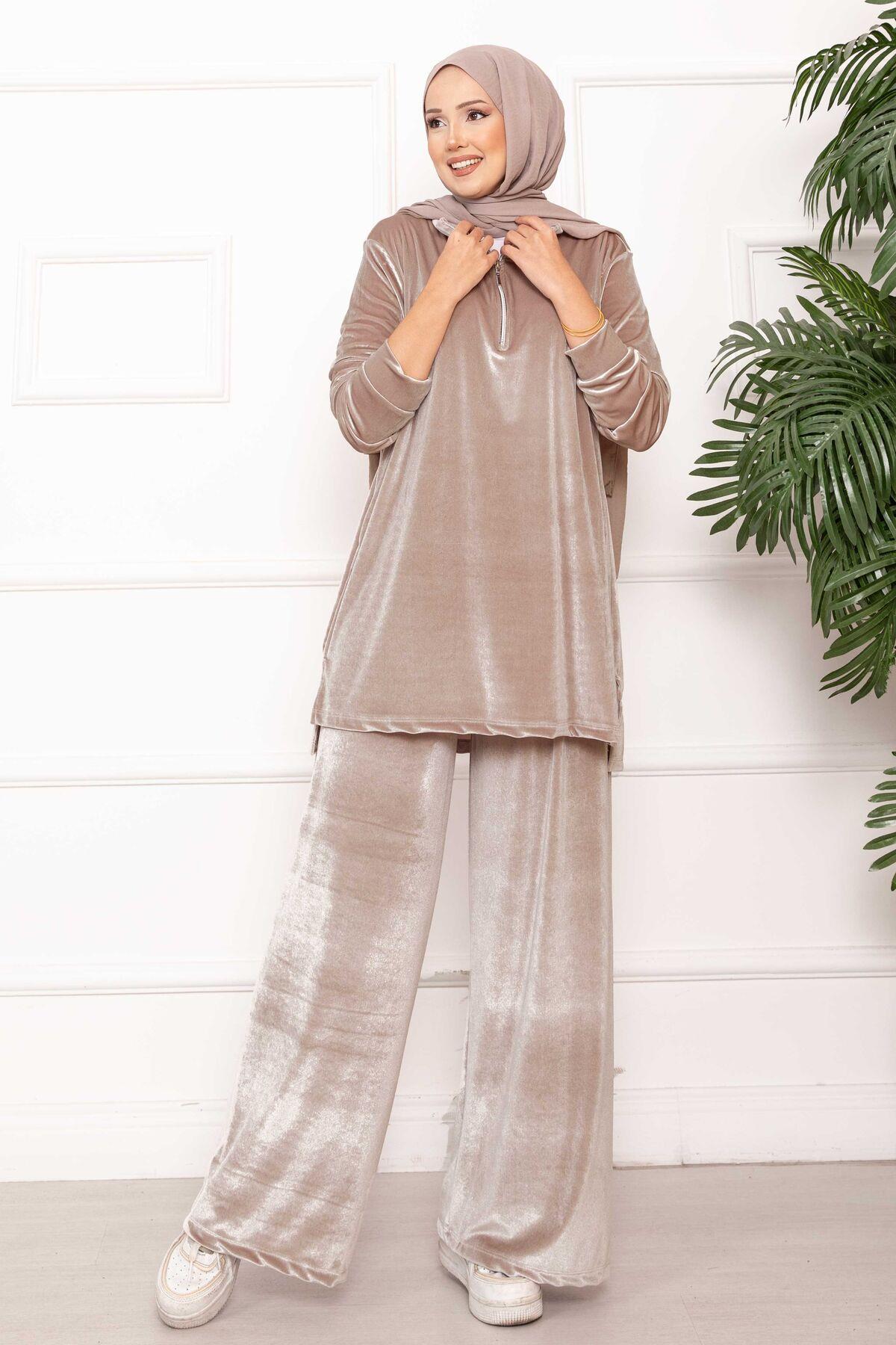 Fermuar Detaylı Kadife İkili Takım Vizon (125M00616476R64STD)