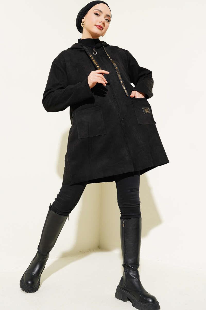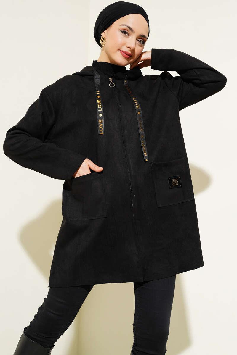 Fermuarlı Cepli Süet Kap Siyah (0569-3154-10-591806)