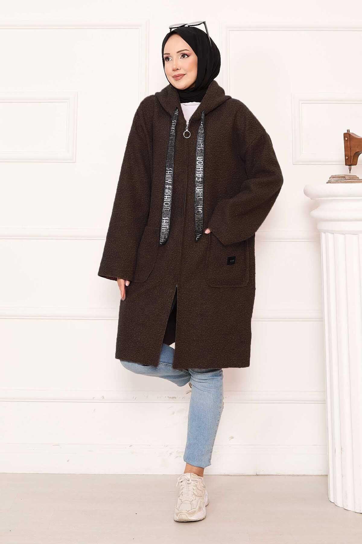 Fermuarlı Kapüşonlu Buklet Kap Kahve (125M02316574R25STD)