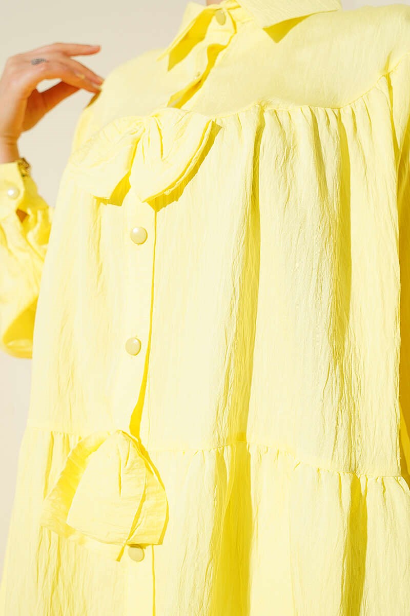 Fiyonk Detaylı Oversize Gömlek Sarı (8086-11005-753291)