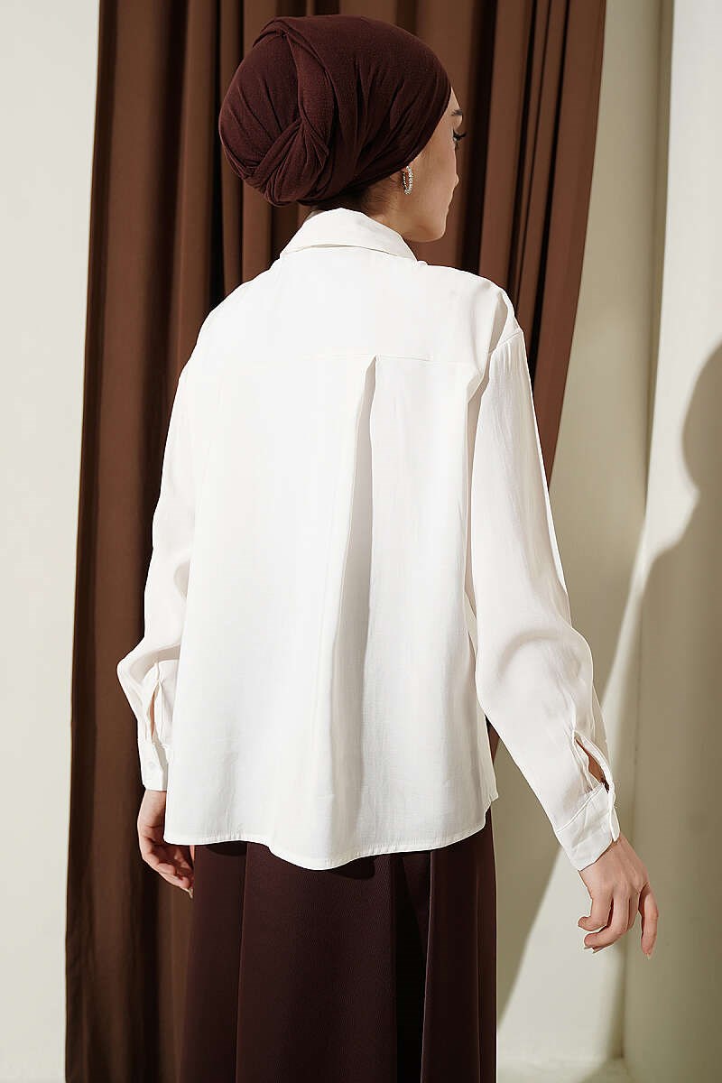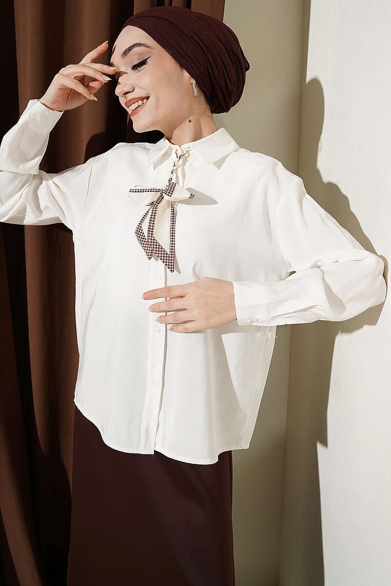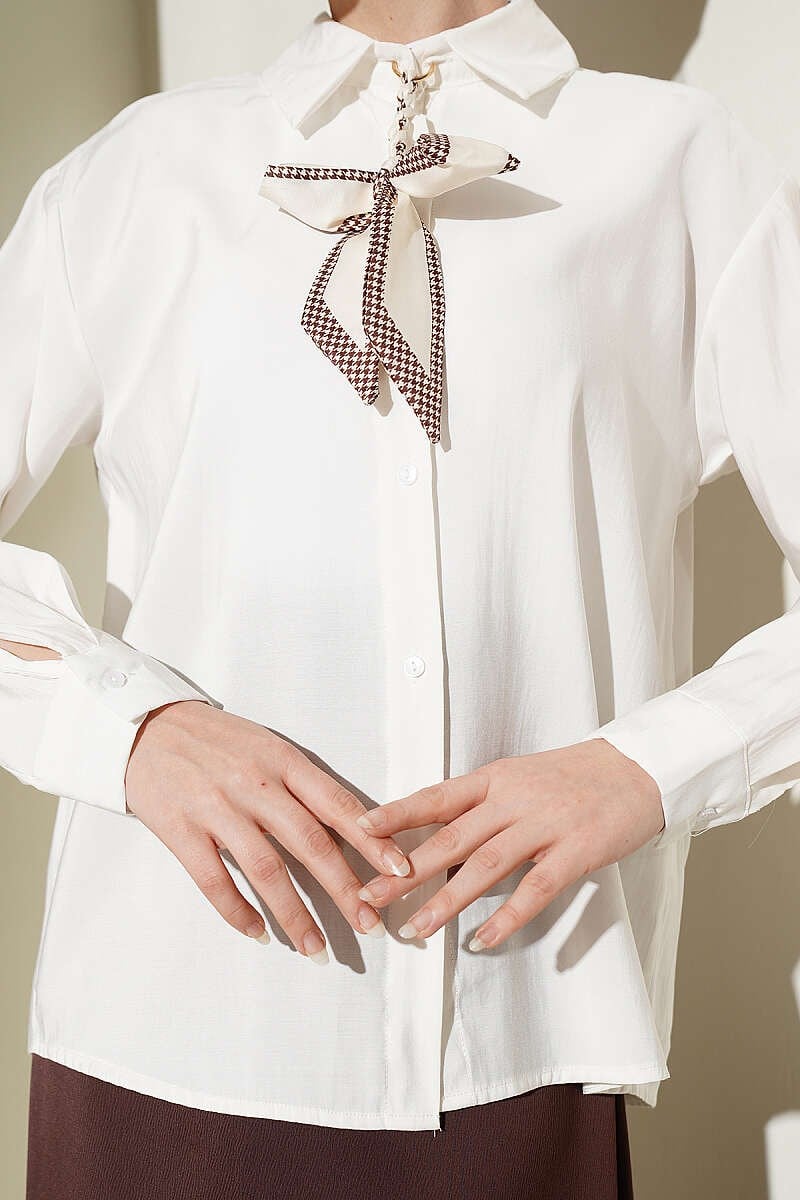 Fular Detaylı Basic Modal Gömlek Ekru (0824-1520-741874)
