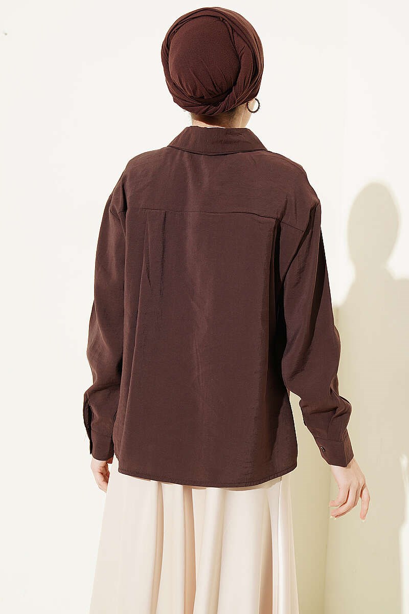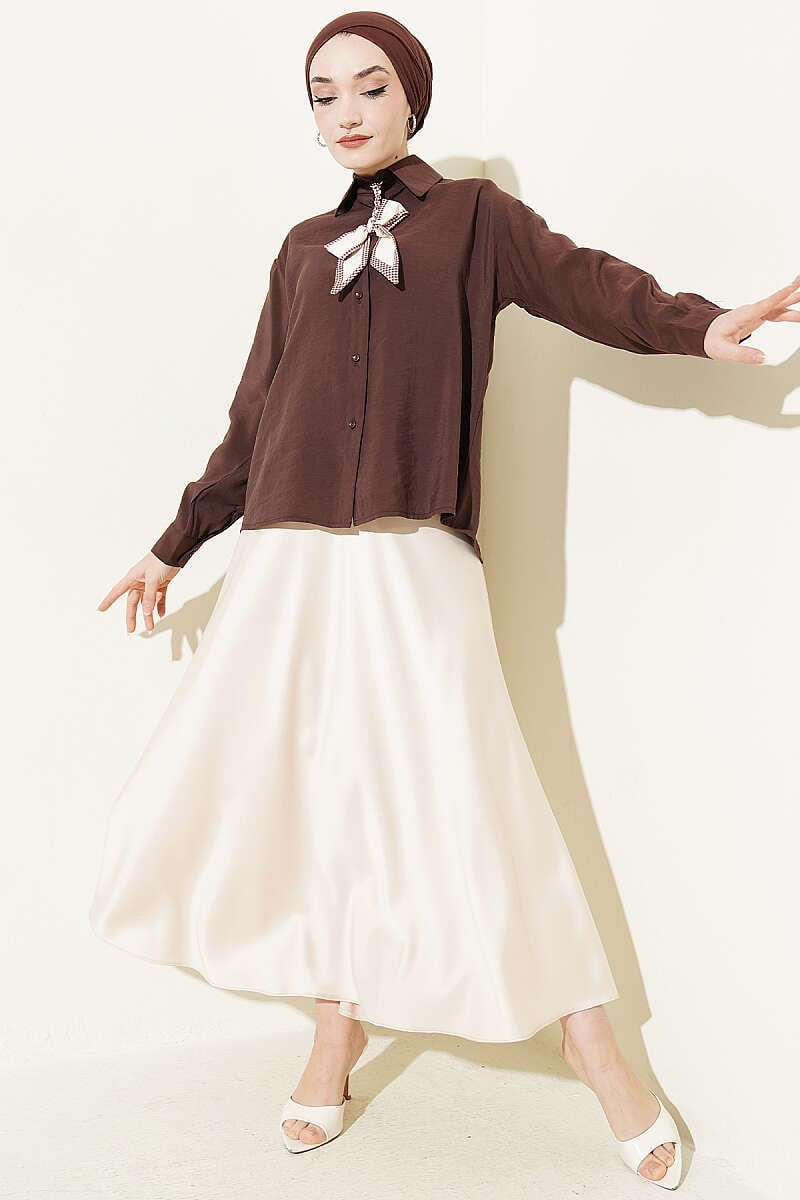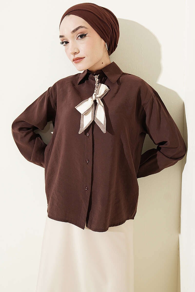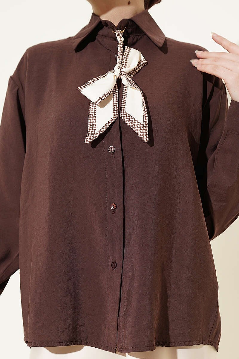 Fular Detaylı Basic Modal Gömlek Kahve (0824-1520-741877)