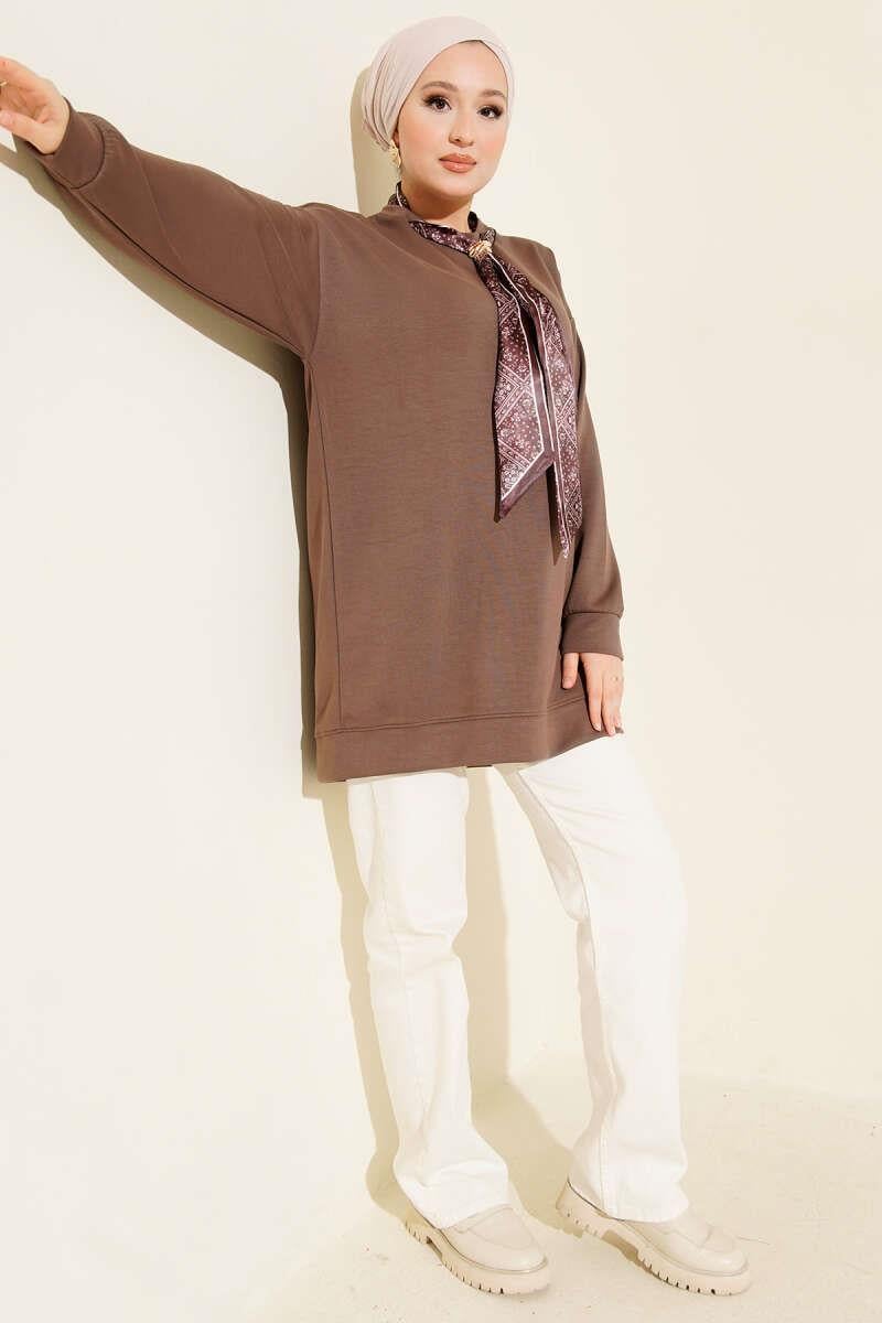 Fular Detaylı Loyşa Tunik Vizon (0674-831-689822)