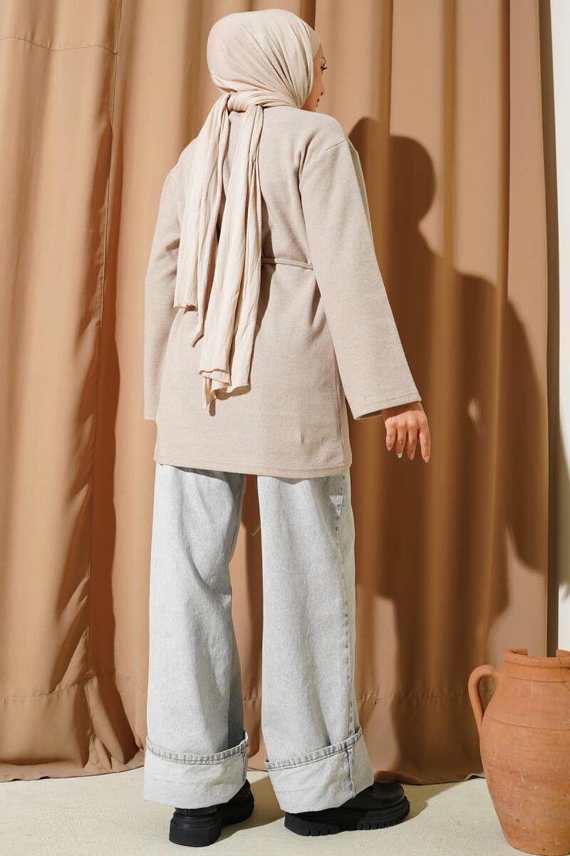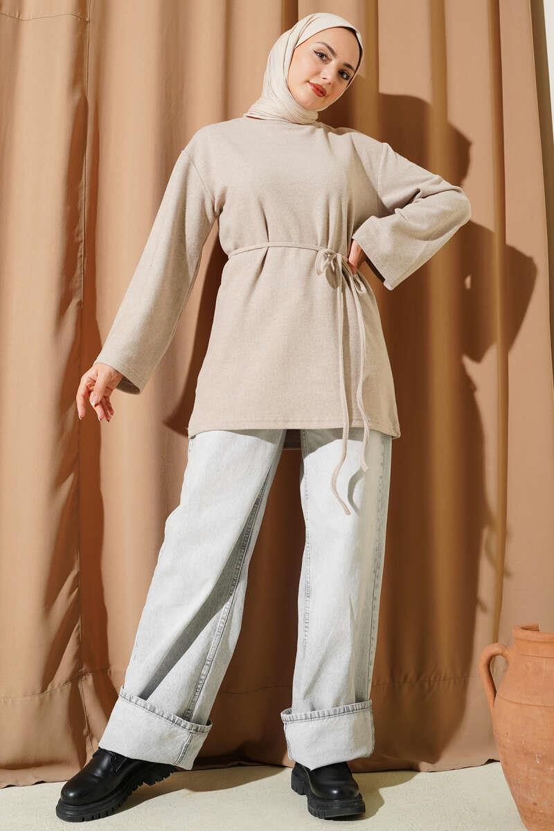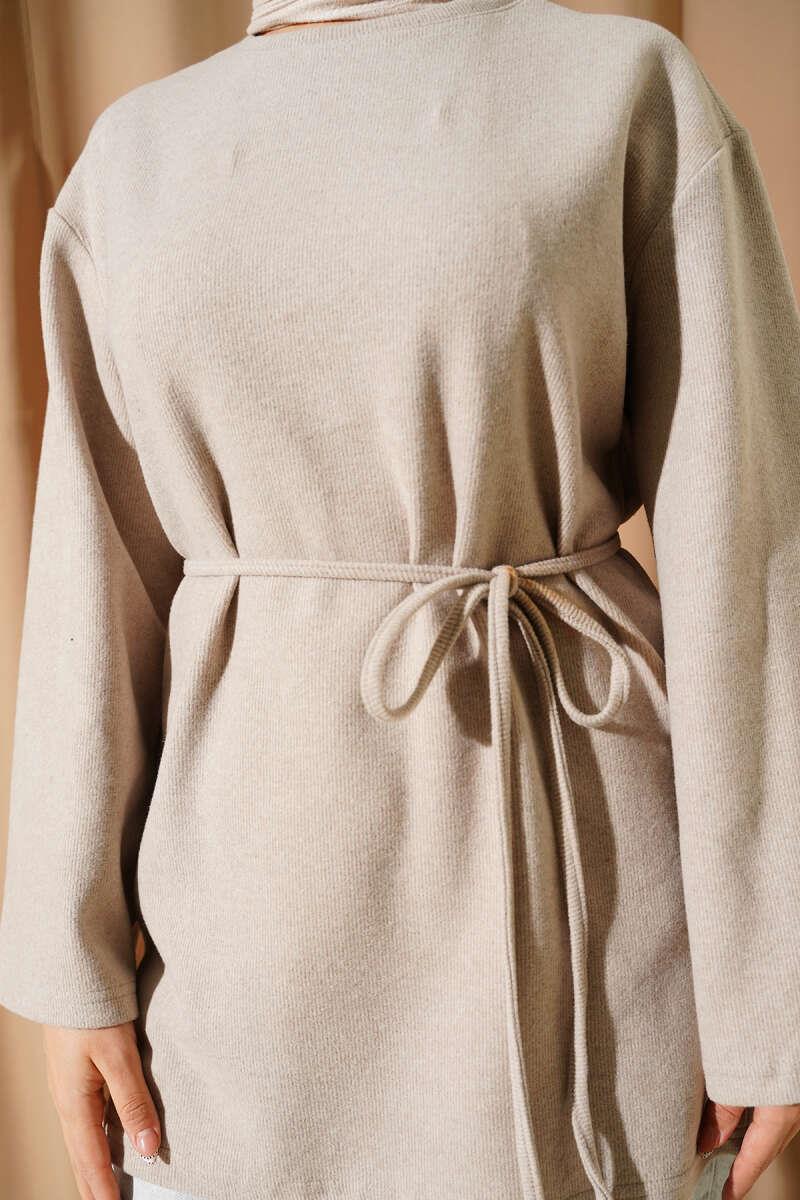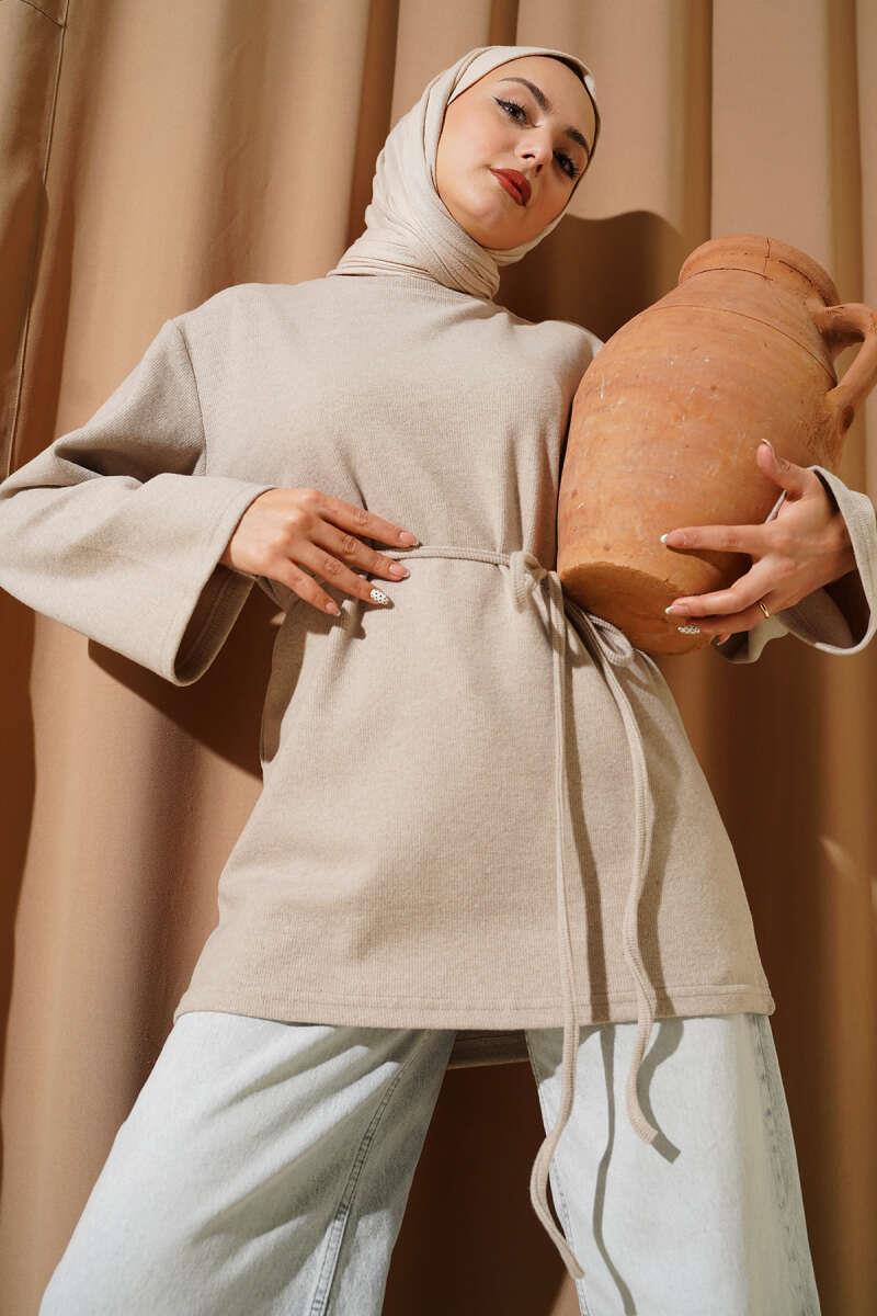 Geniş Kollu Fitilli Kaşe Tunik Bej (0582-13114-687915)