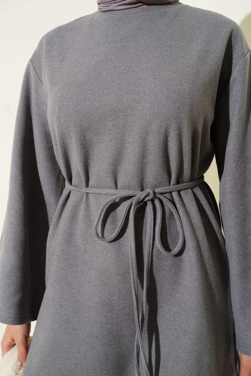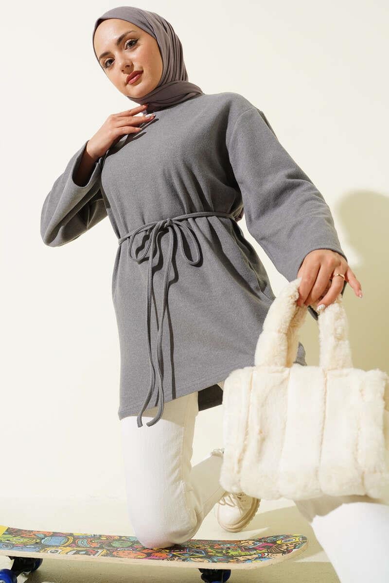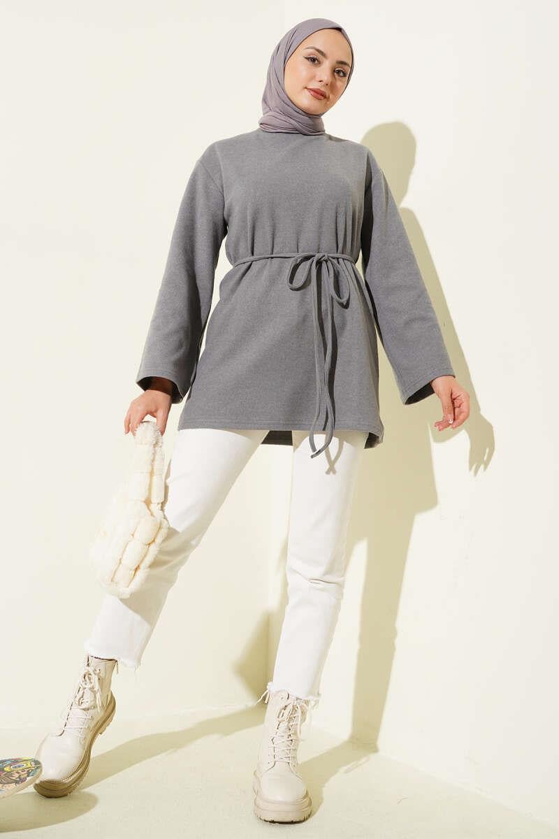 Geniş Kollu Fitilli Kaşe Tunik Gri (0582-13114-687918)