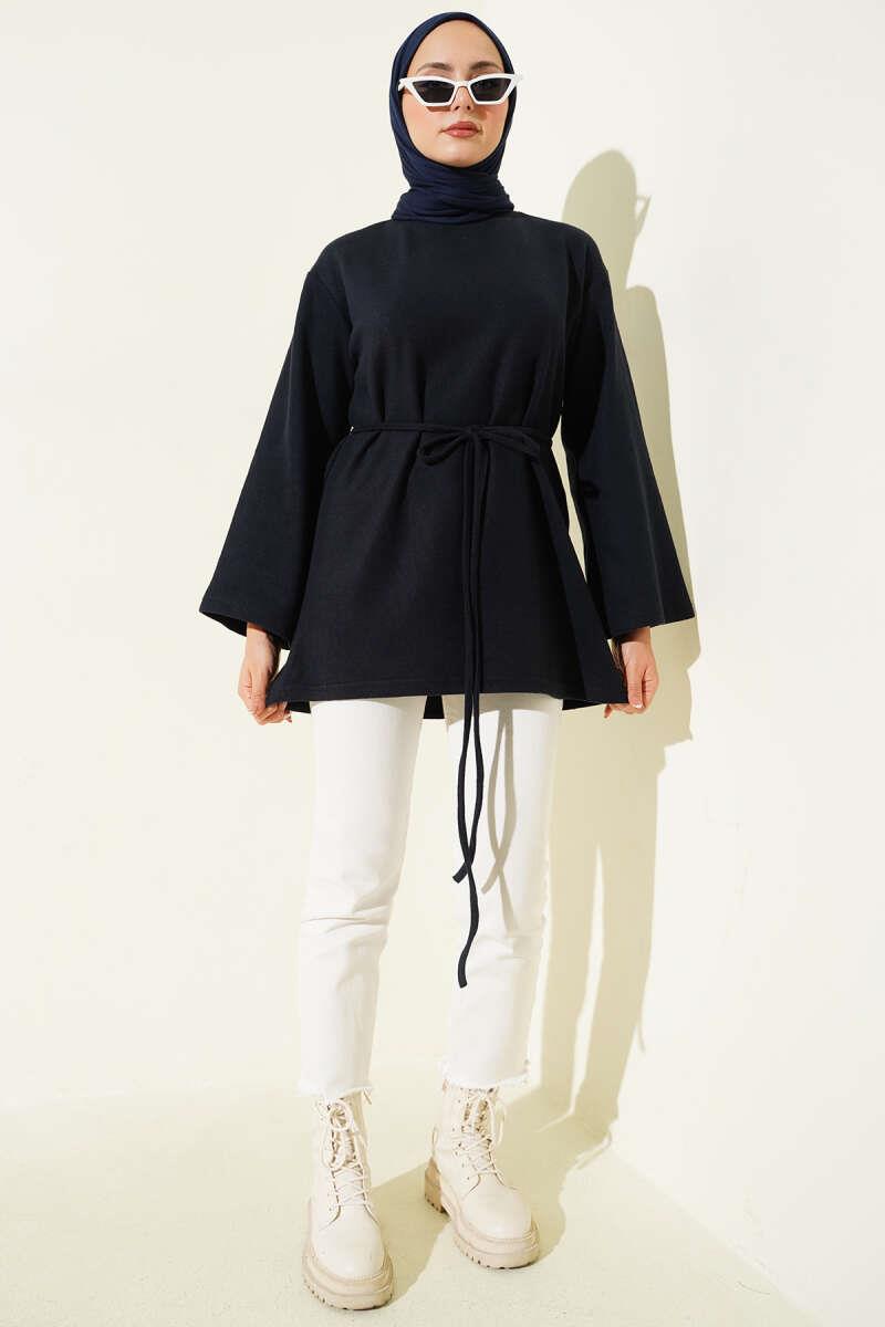 Geniş Kollu Fitilli Kaşe Tunik Lacivert (0582-13114-687922)