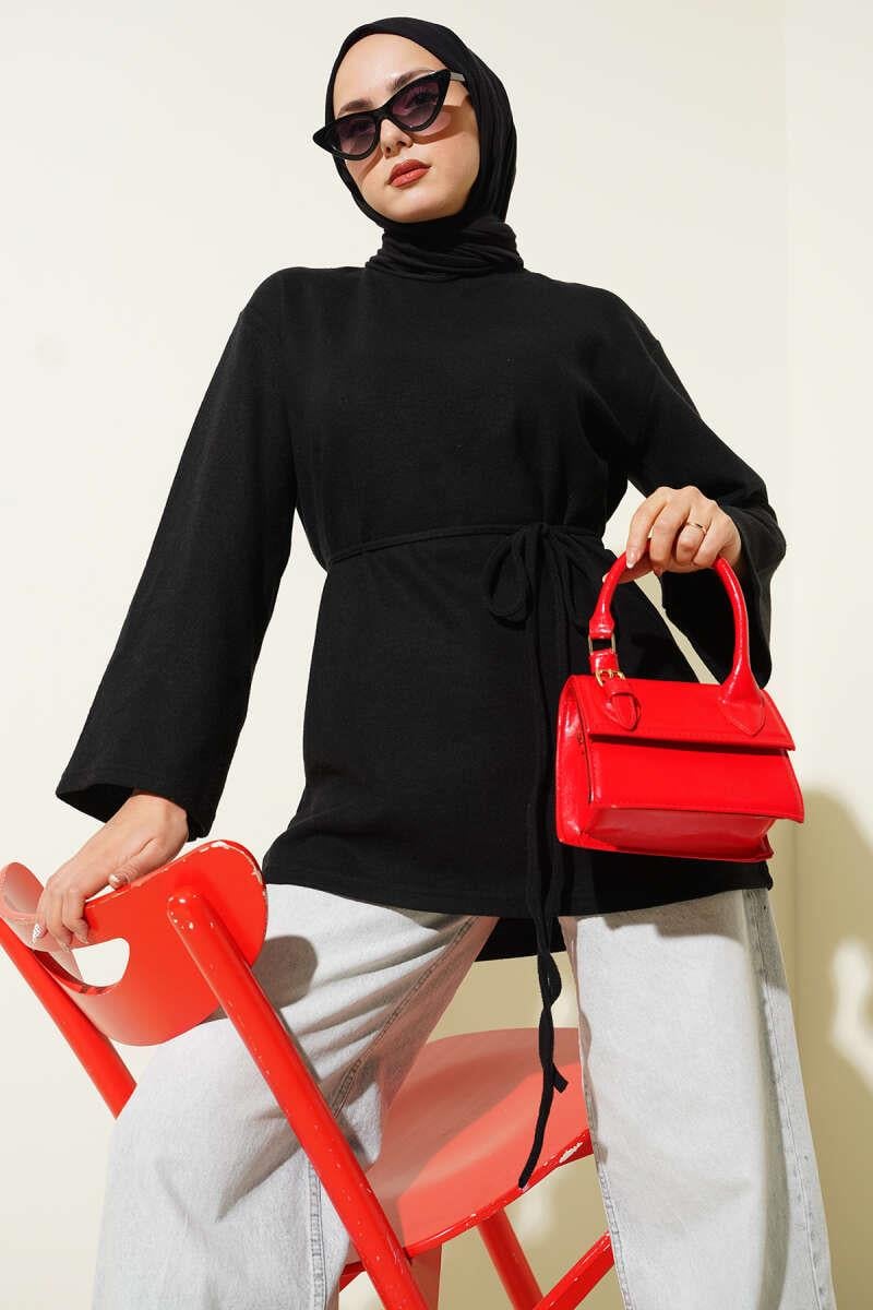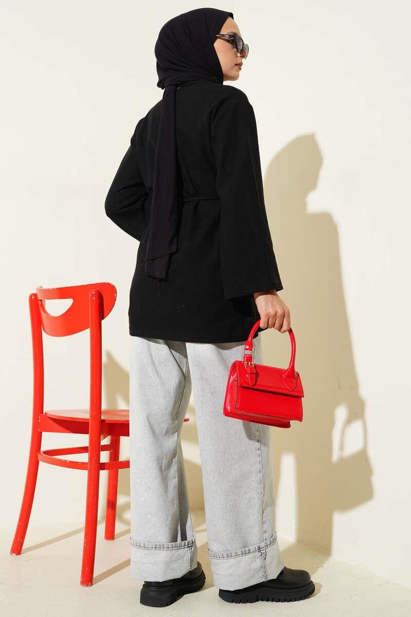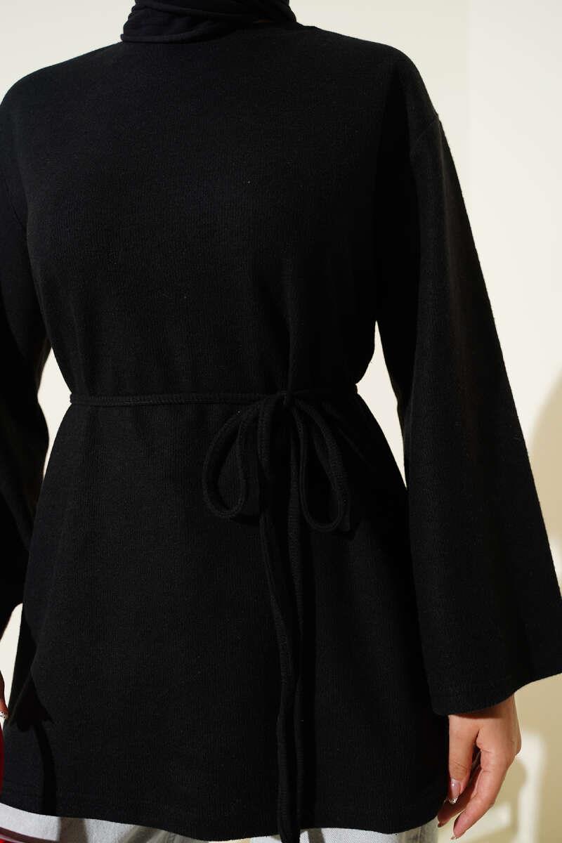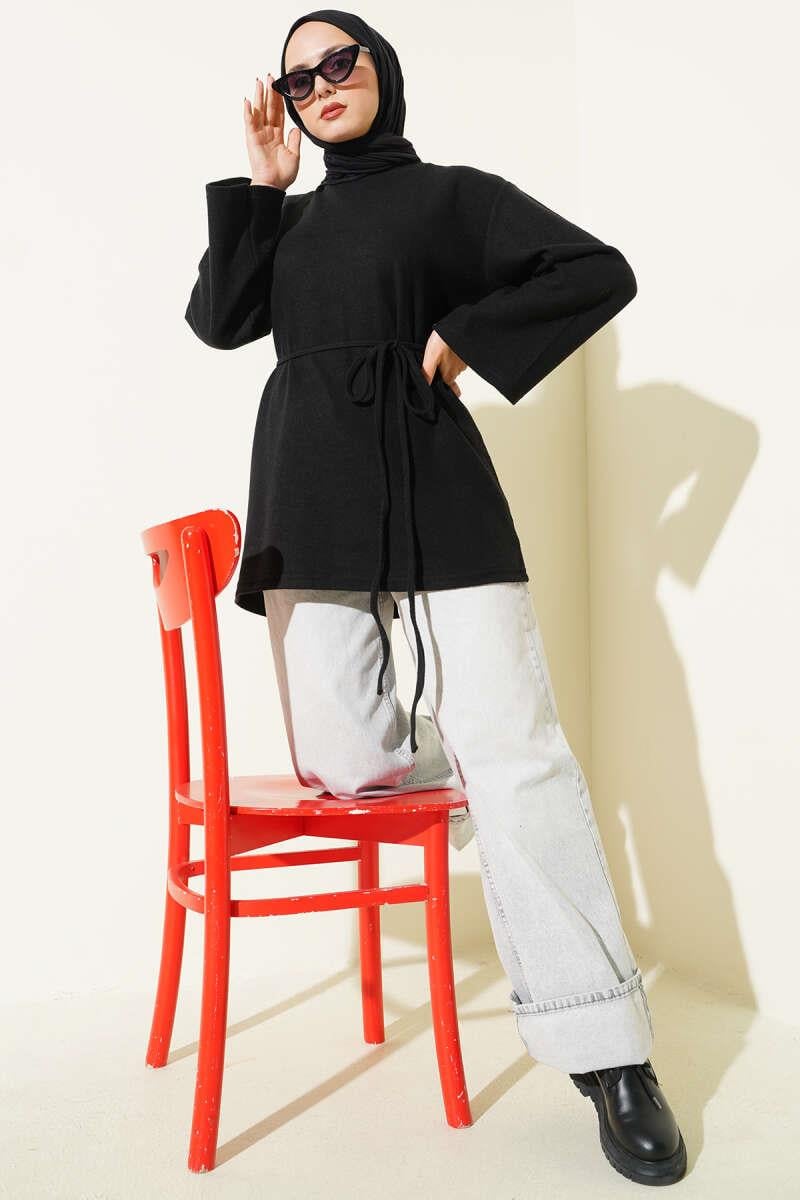 Geniş Kollu Fitilli Kaşe Tunik Siyah (0582-13114-687924)
