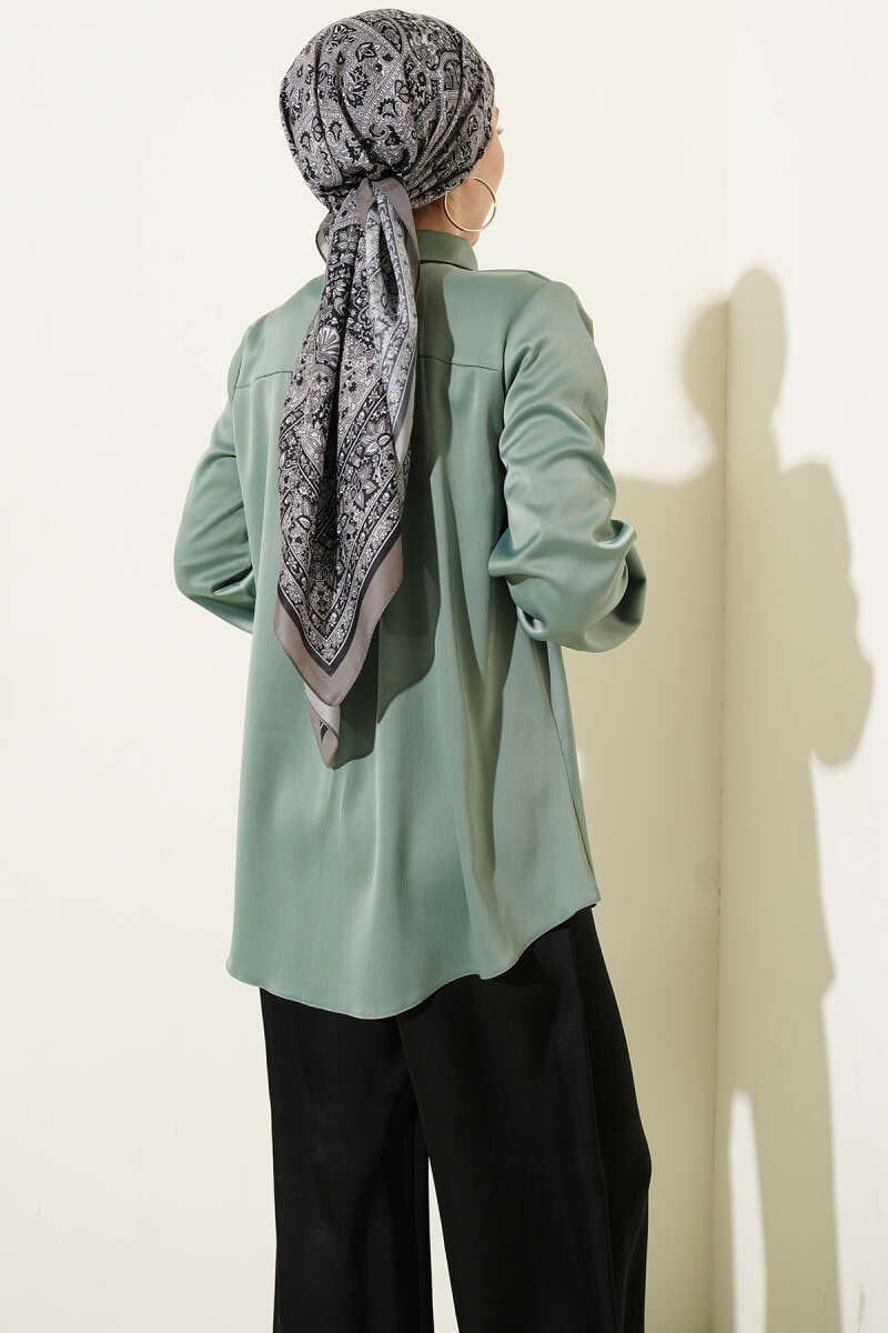 Gizli Düğmeli Basic Saten Gömlek Çağla Yeşili (0999-5186-734350)